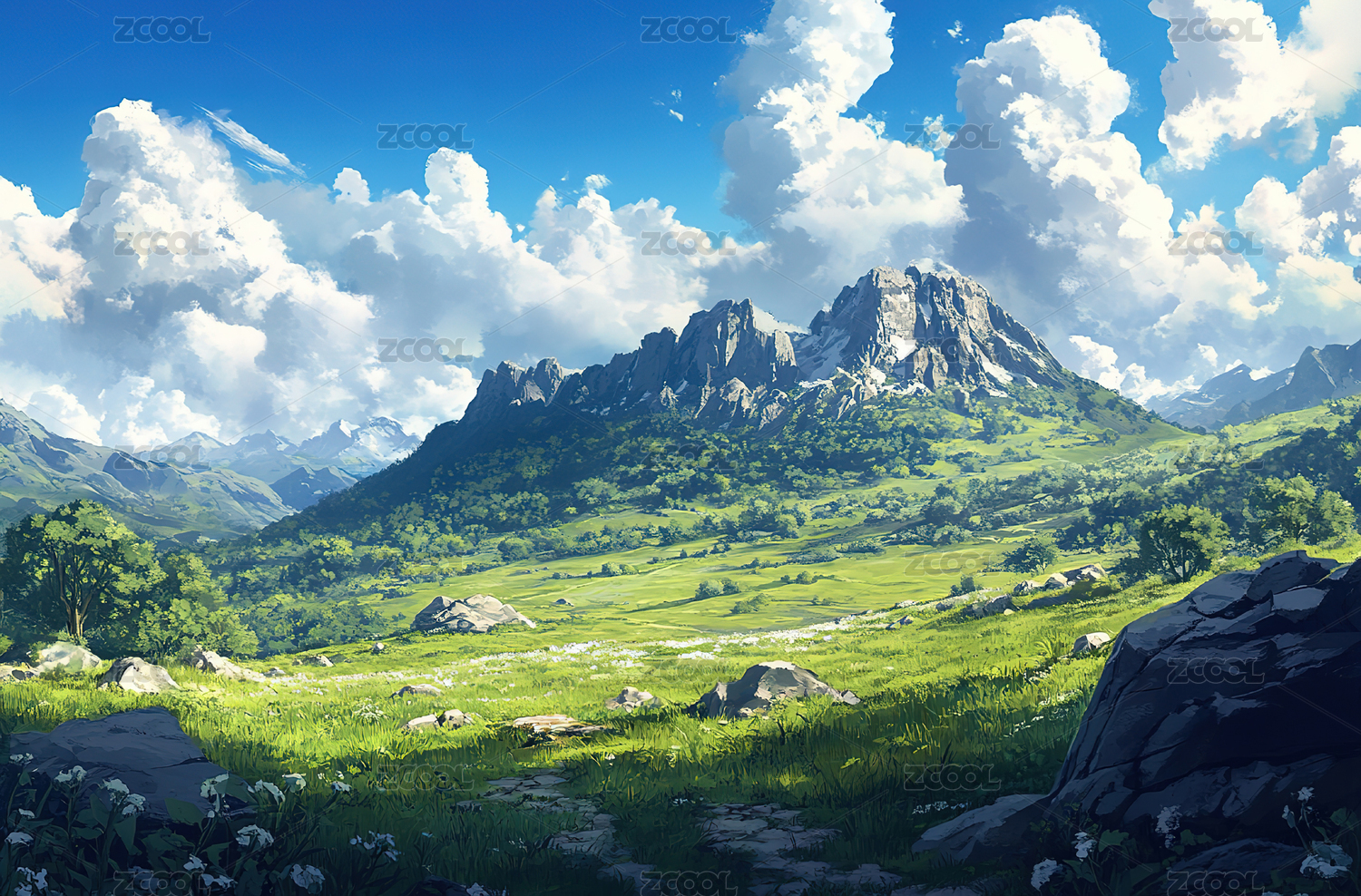 户外,小麦,草地,草坪,背景,蓝天,高山,树