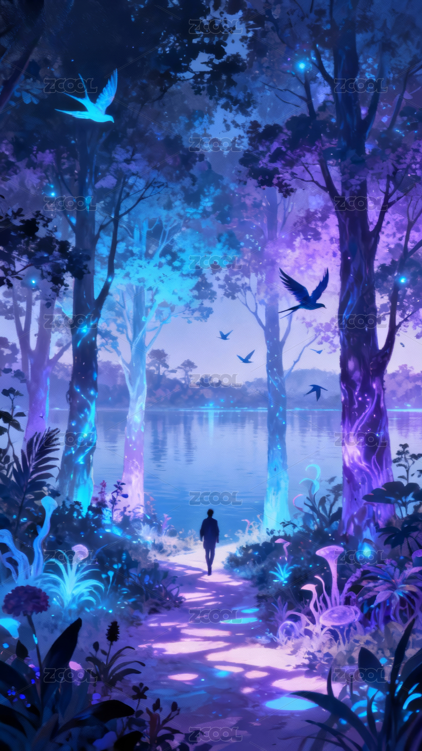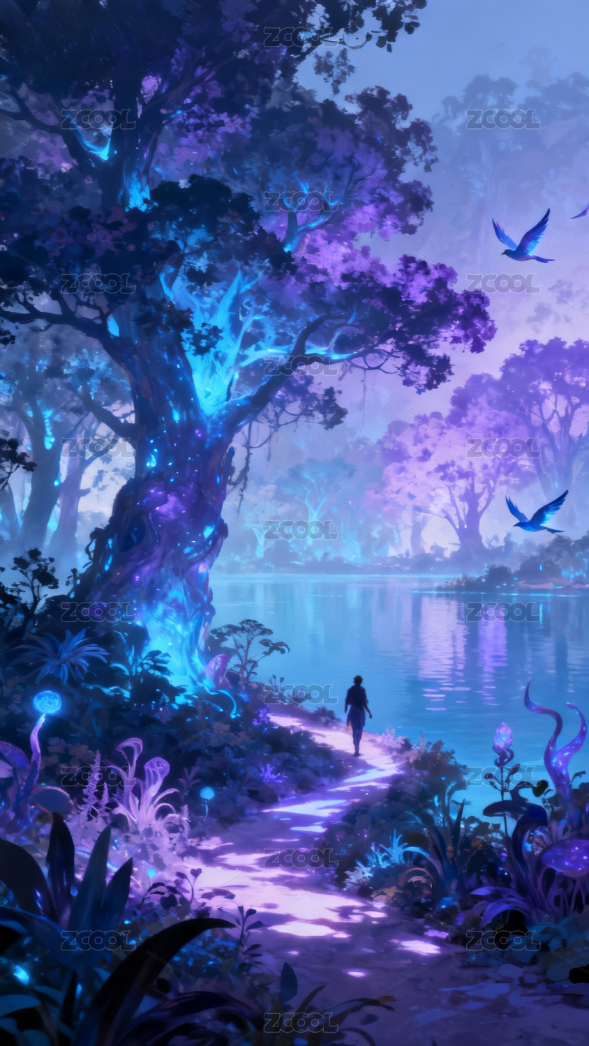 旅游目的地,宁静,树,天空,自然,旅行,自然美,水,风景,AI数字艺术