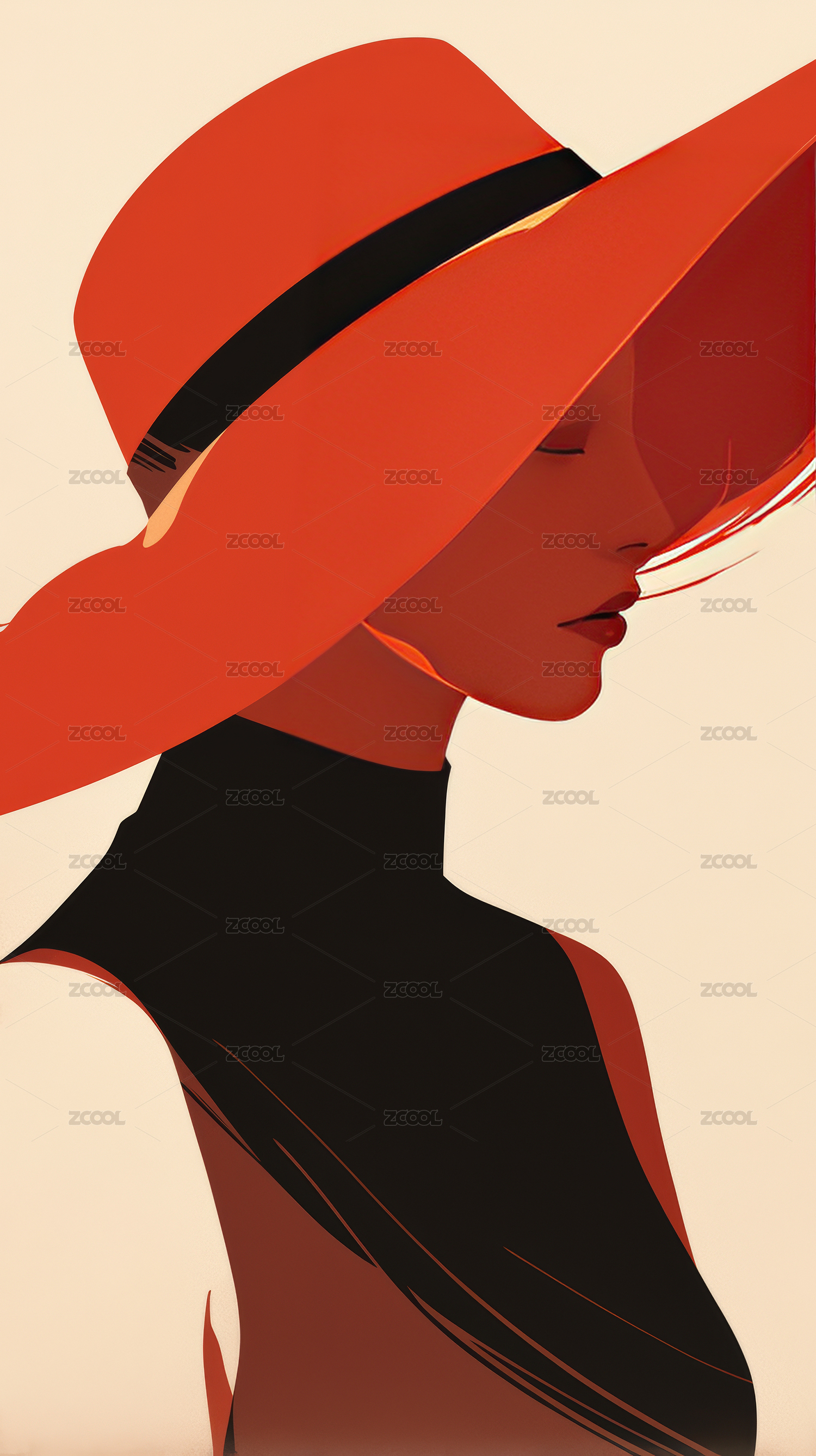 红帽子,艺术,绘画,光影,线条,抽象,艺术作品,浪漫,质感,红色