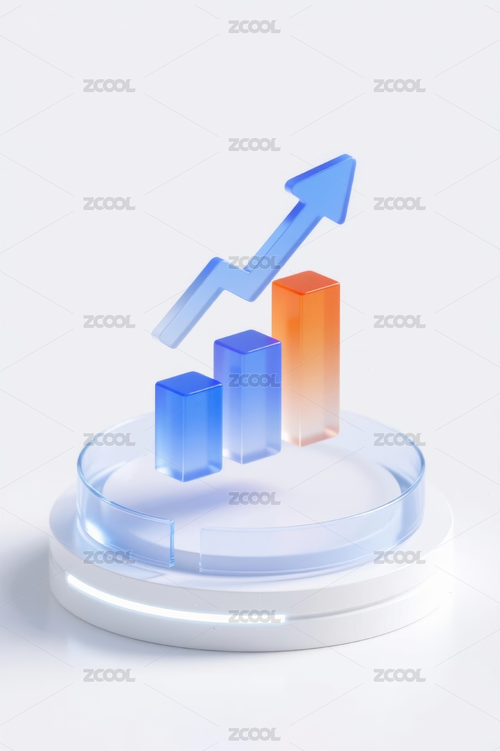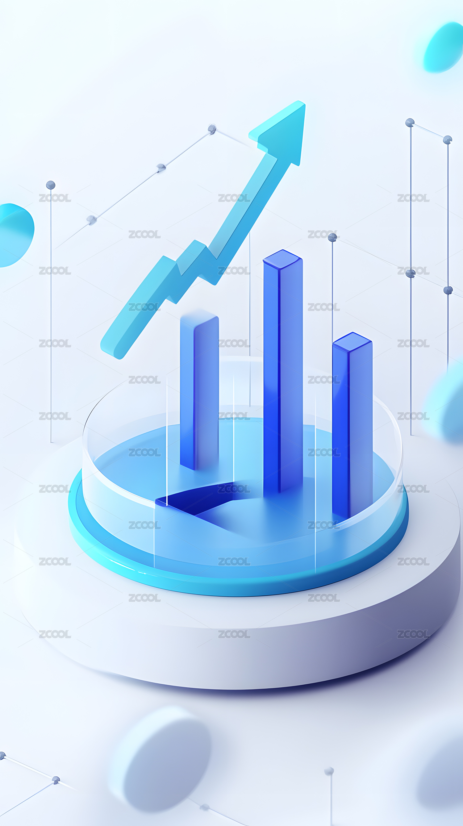 蓝色柱状图与上升箭头