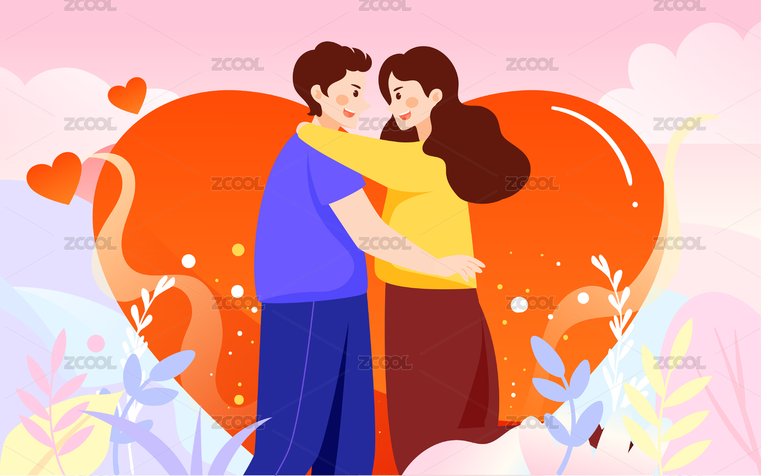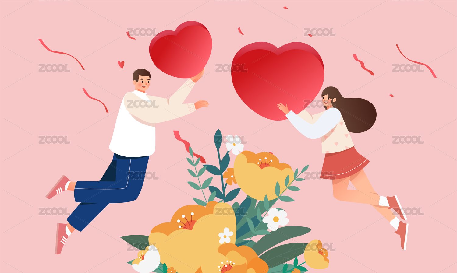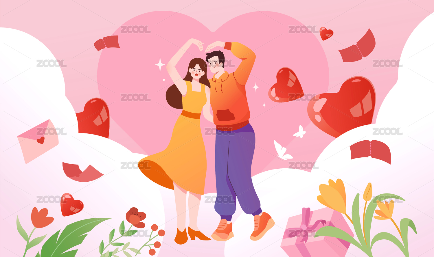 情人节浪漫情侣比心庆祝520爱情矢量插画