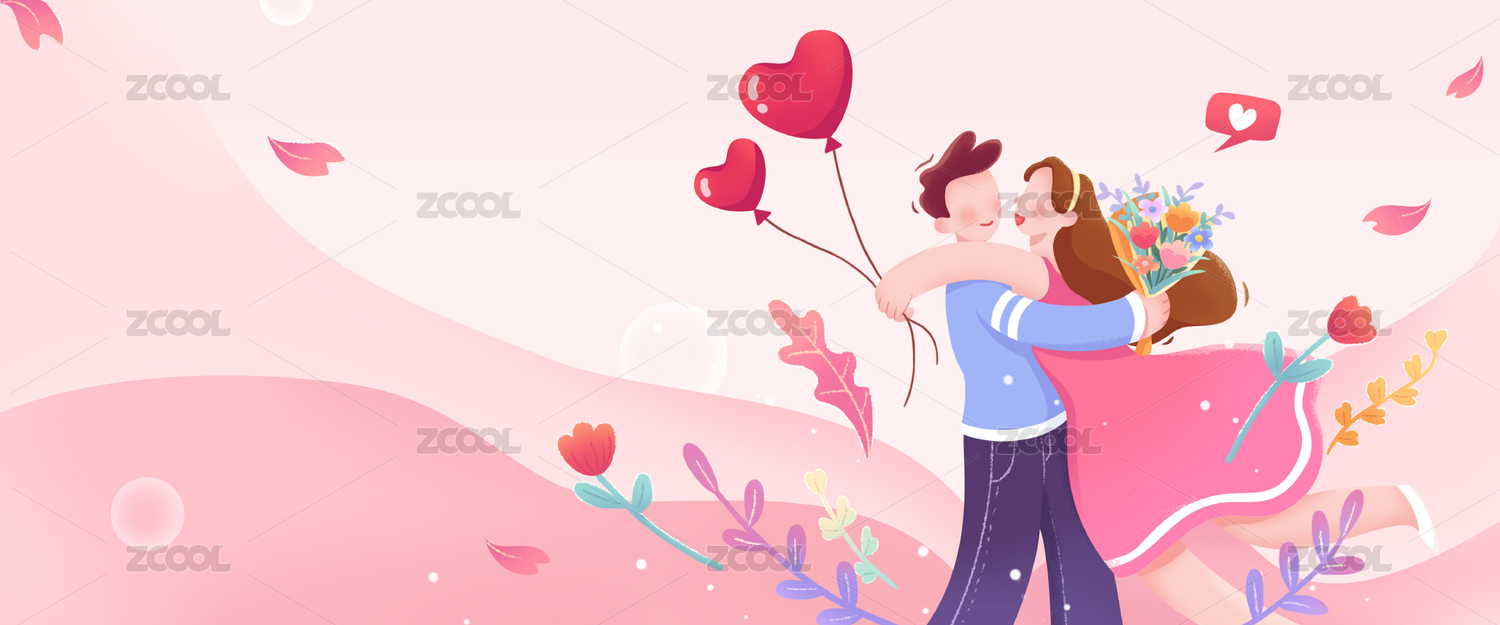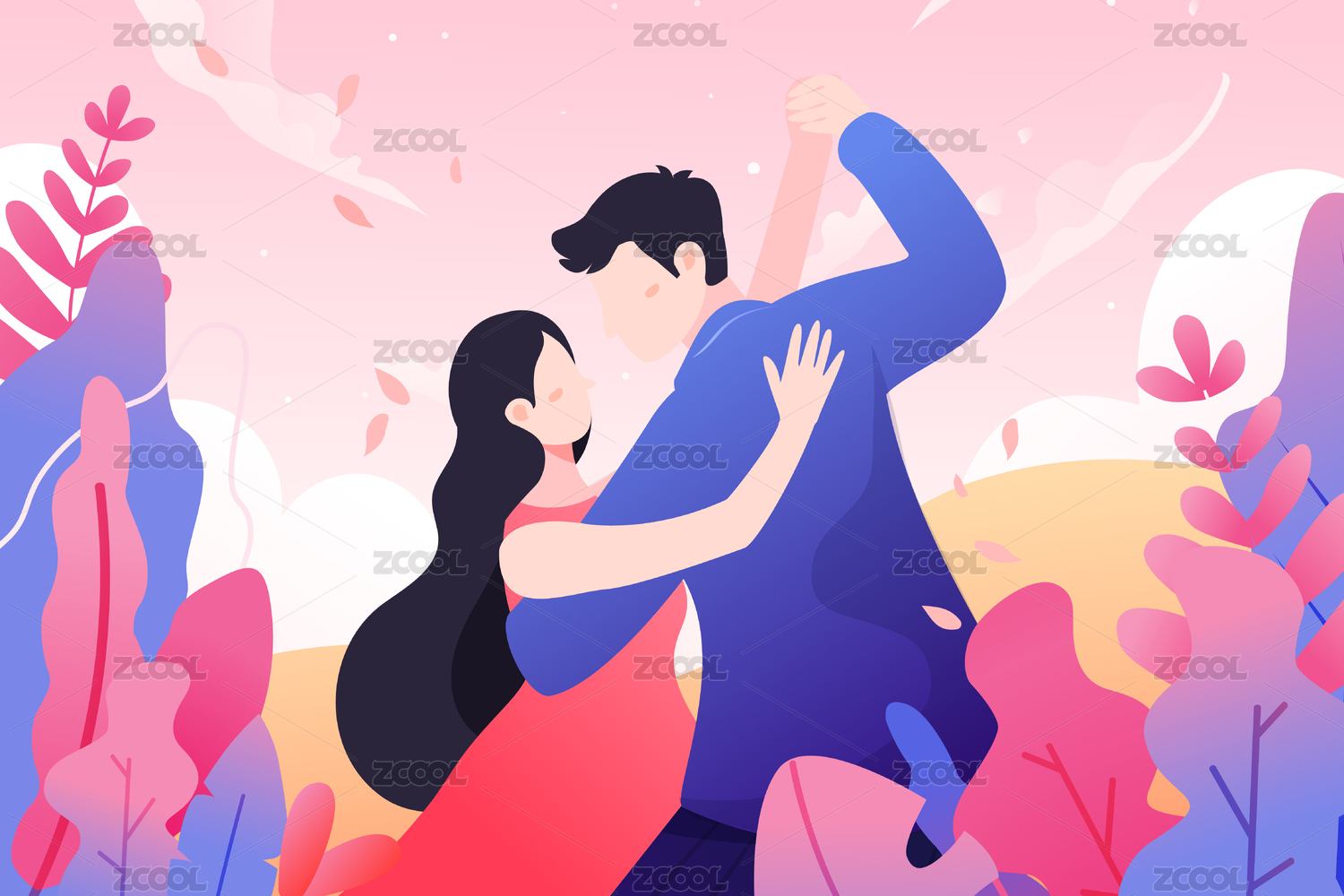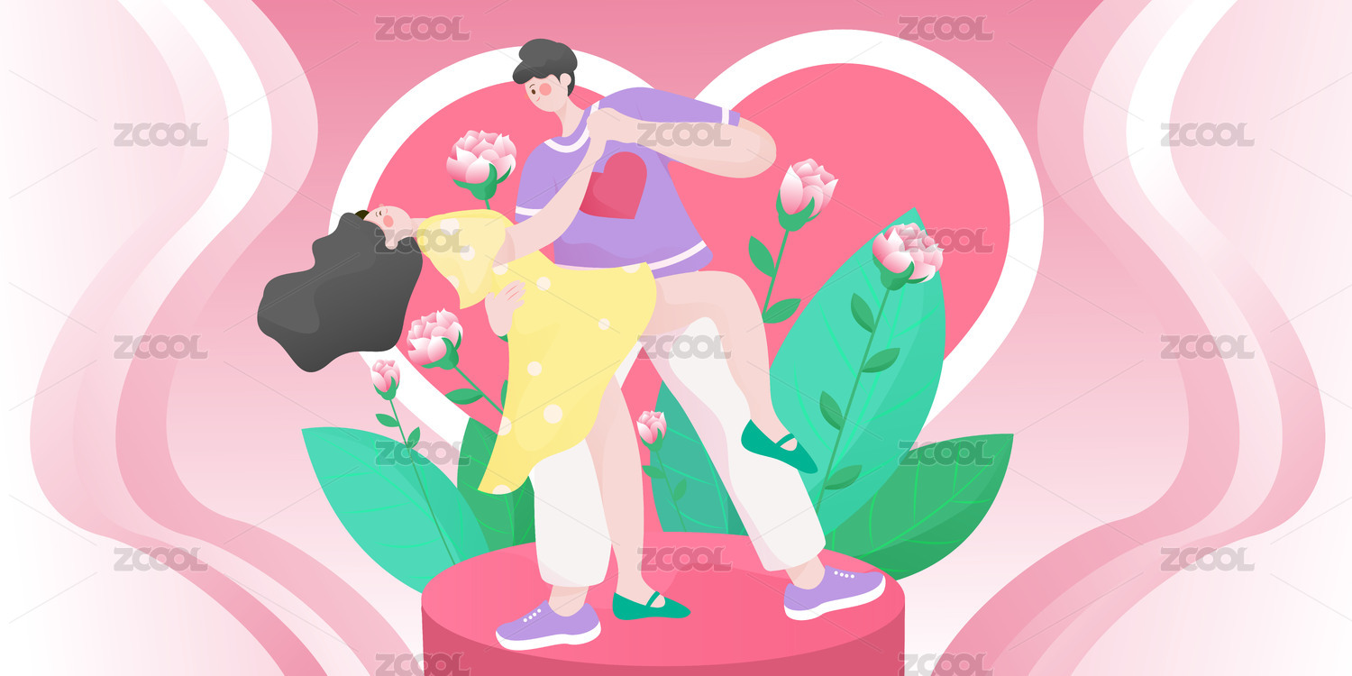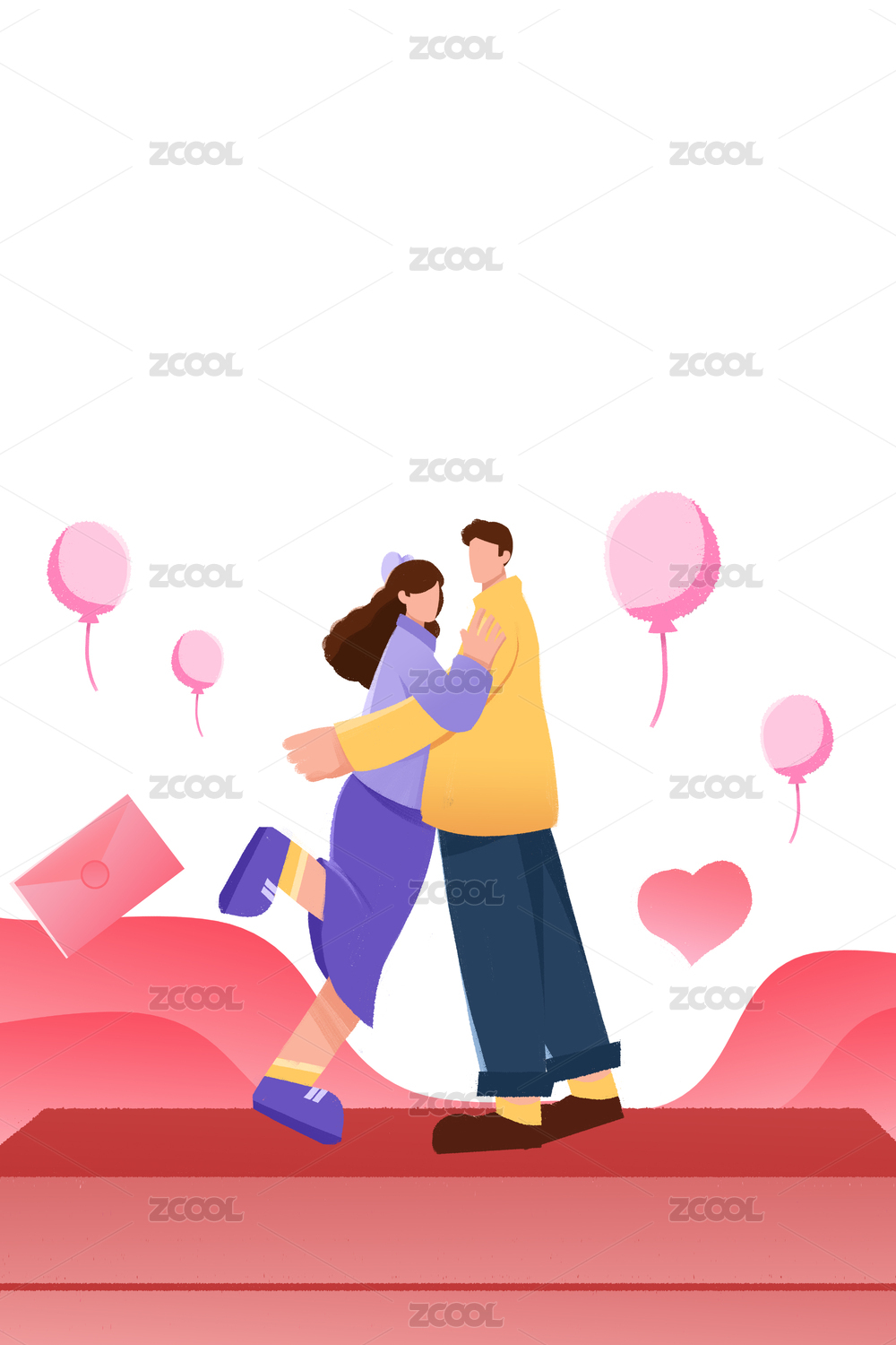 卡通情人节情侣约会浪漫伴侣在一起出游旅行