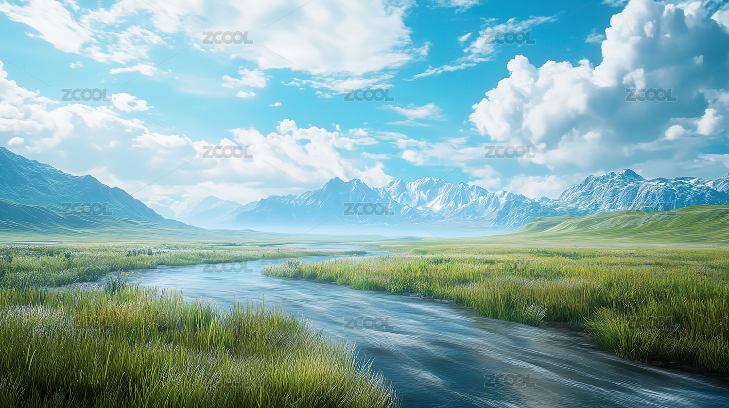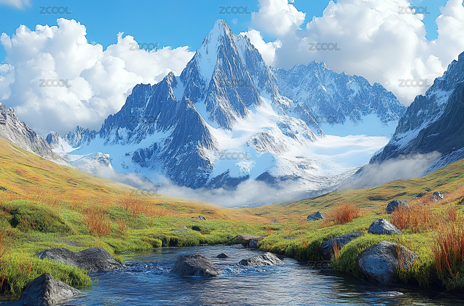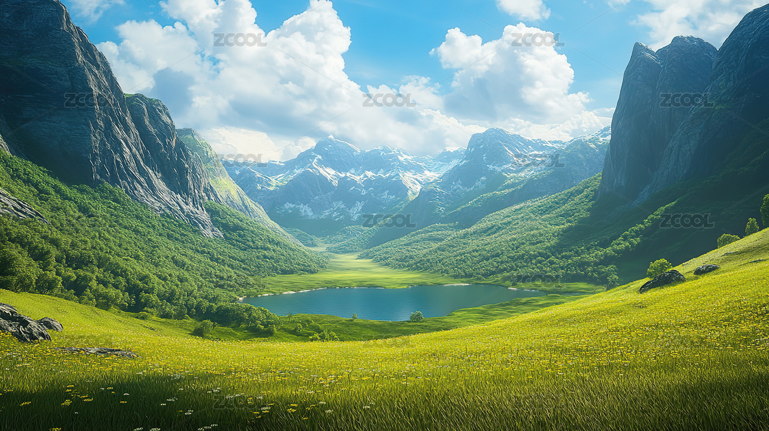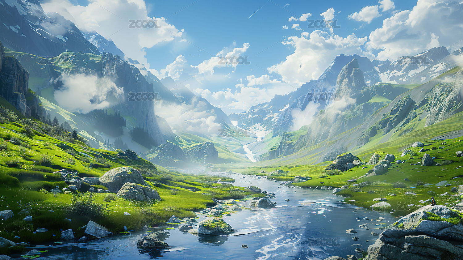 阳光照射下奇幻美丽的山谷的电脑背景壁纸