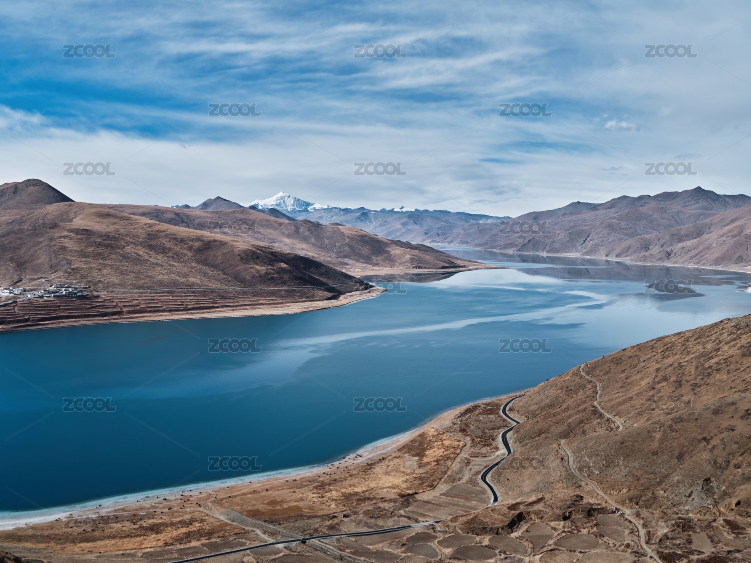 中国西藏冬季高原山南市浪卡子县羊卓雍措湖