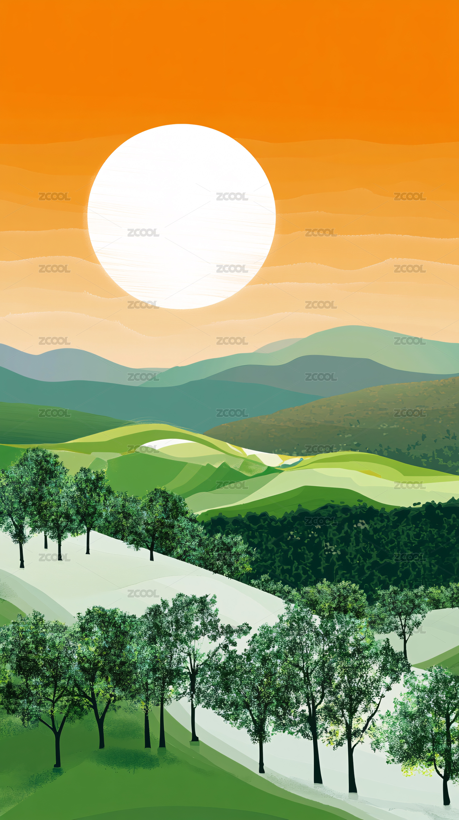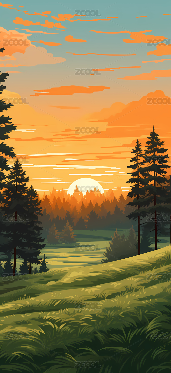 绿色乡村风景插画