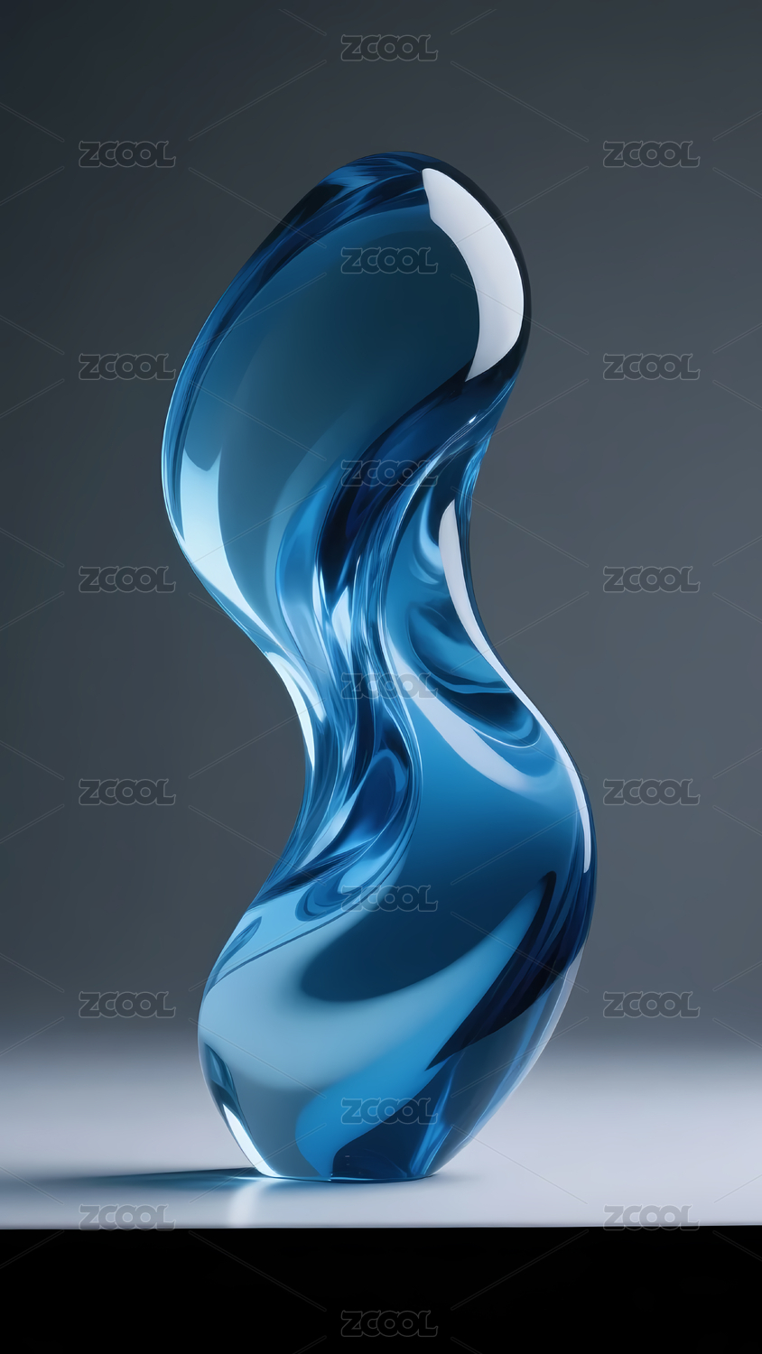 蓝色透明扭曲形态的艺术雕塑
