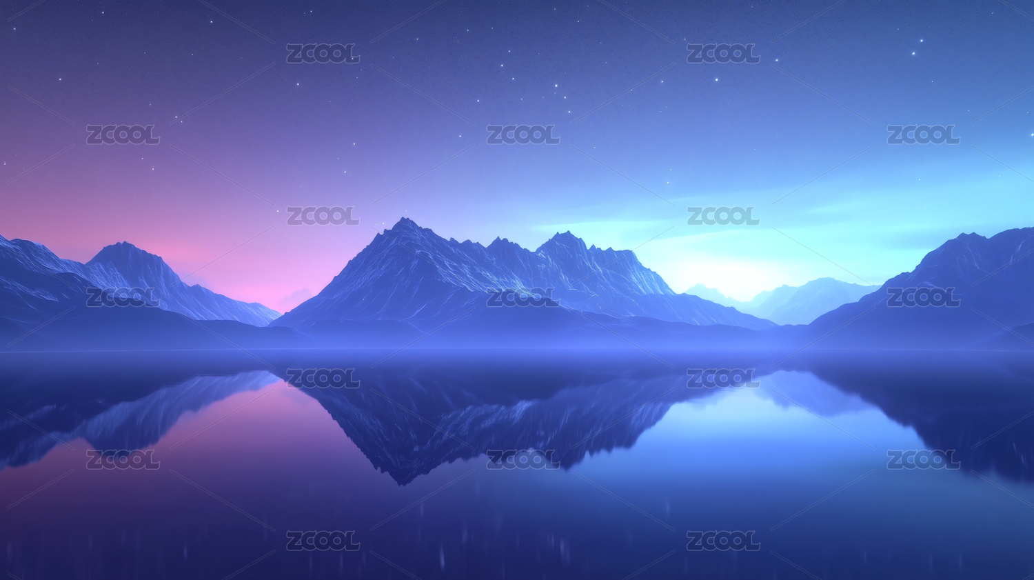 平静水面上的山峰和星辰倒影唯美风景