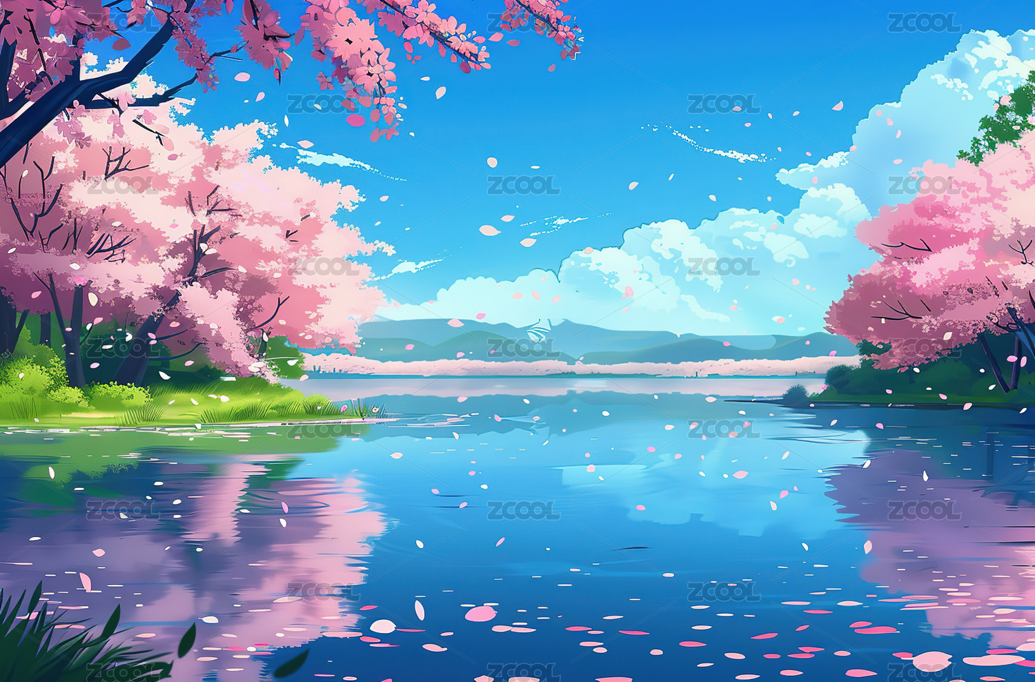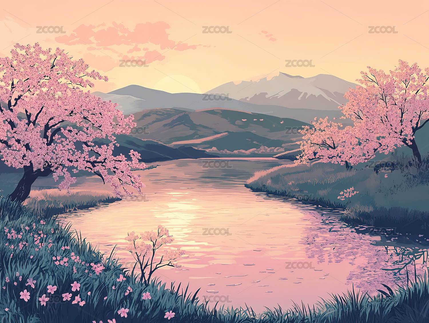 春日江河清澈见底柳树摇曳鱼儿欢跃