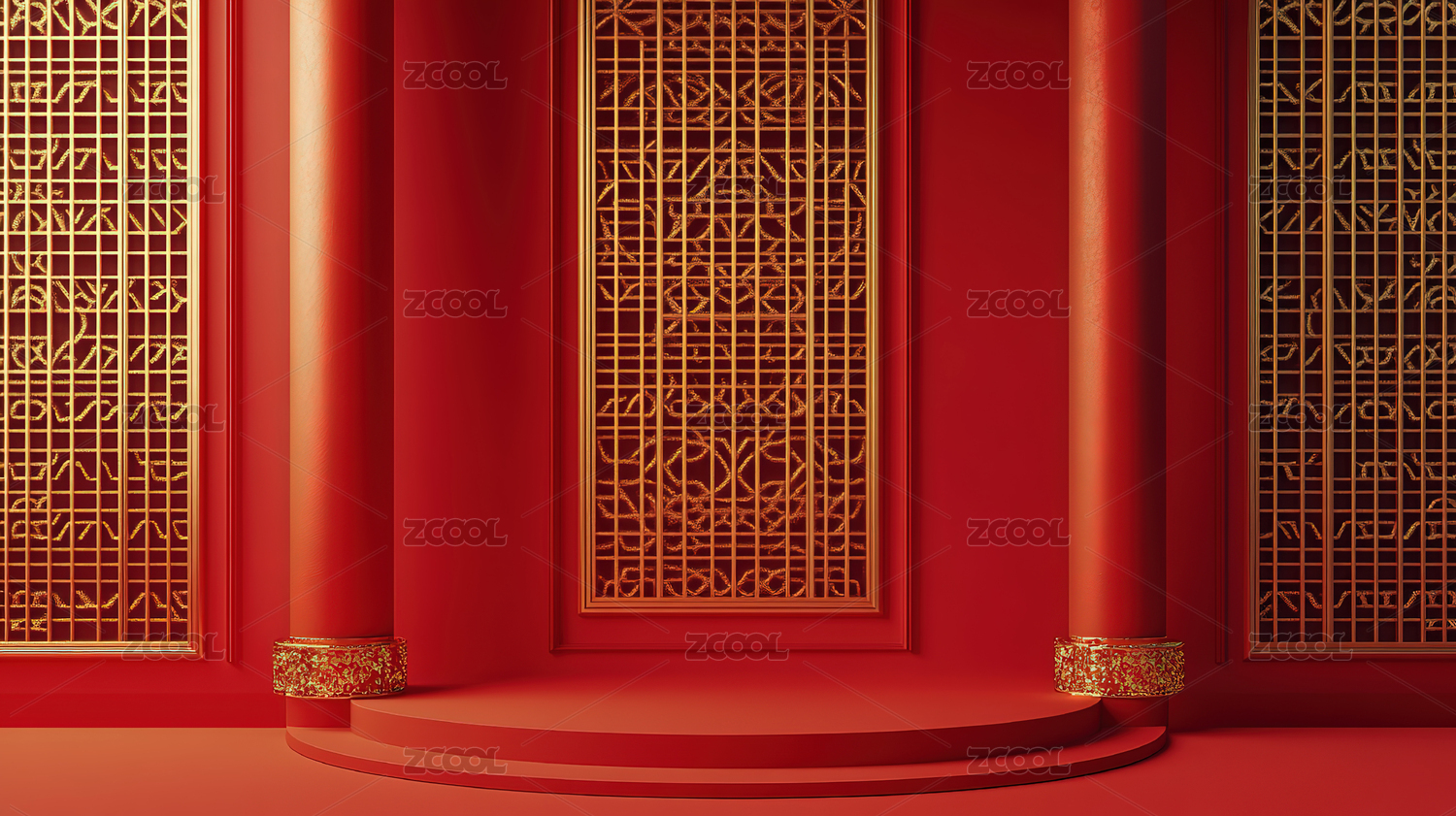 中国风红色展台背景图