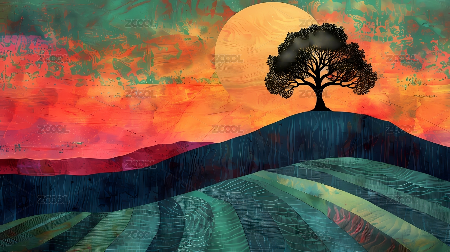印象派风景抽象海报背景装饰画