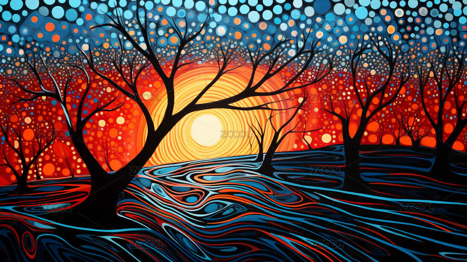 抽象几何圆点风景插画海报