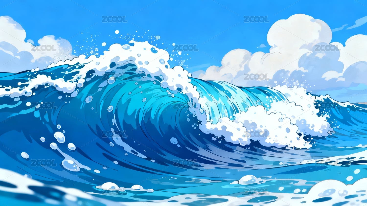 海浪插画,夏天避暑旅行浪花元素概念背景