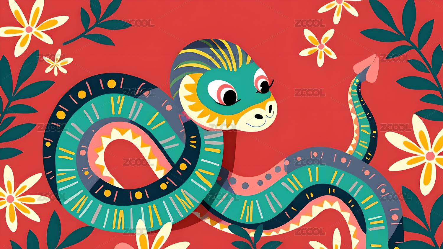 多彩蛇年卡通图案