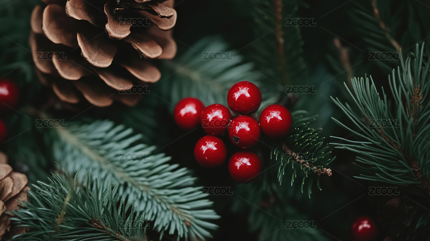 松枝松果圣诞装饰场景