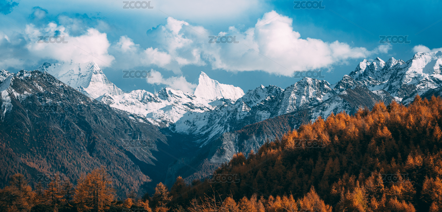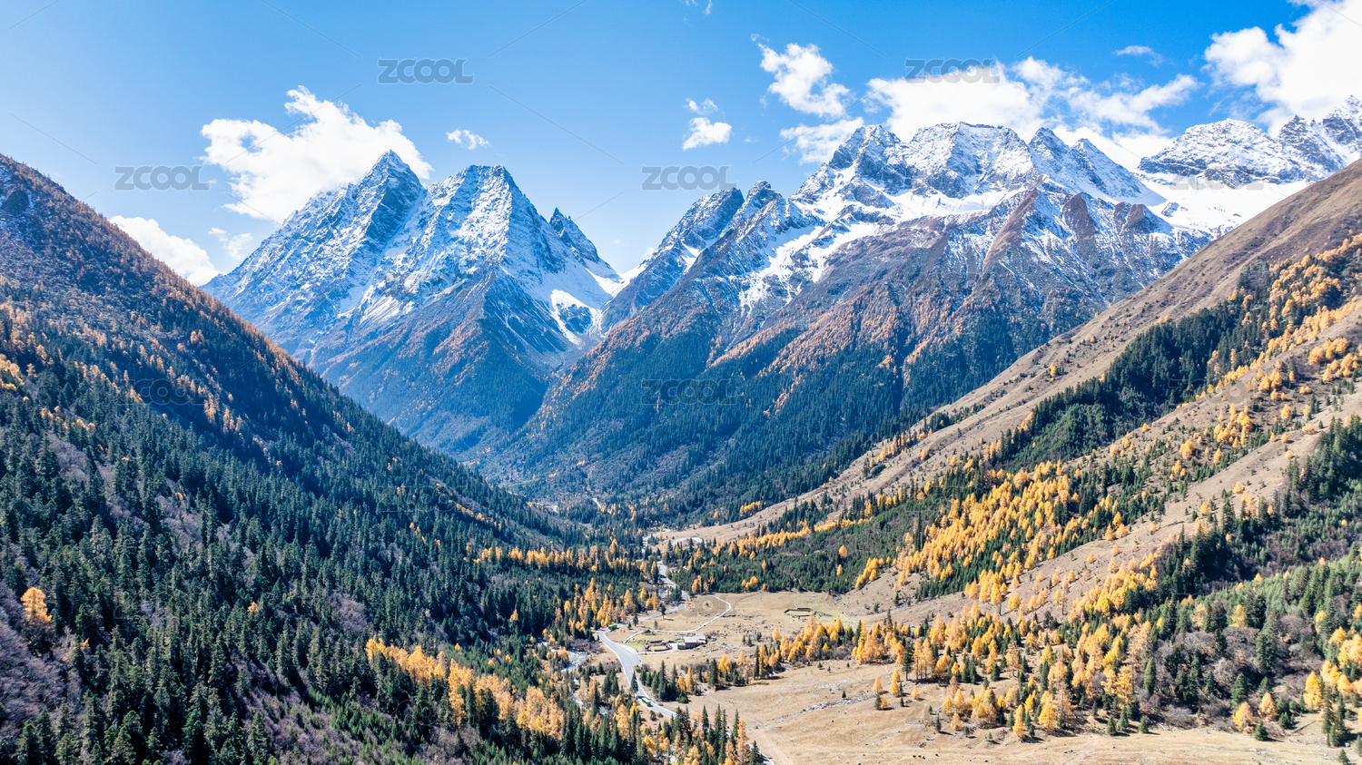 四川四姑娘山双桥沟景区秋天的雪山美景