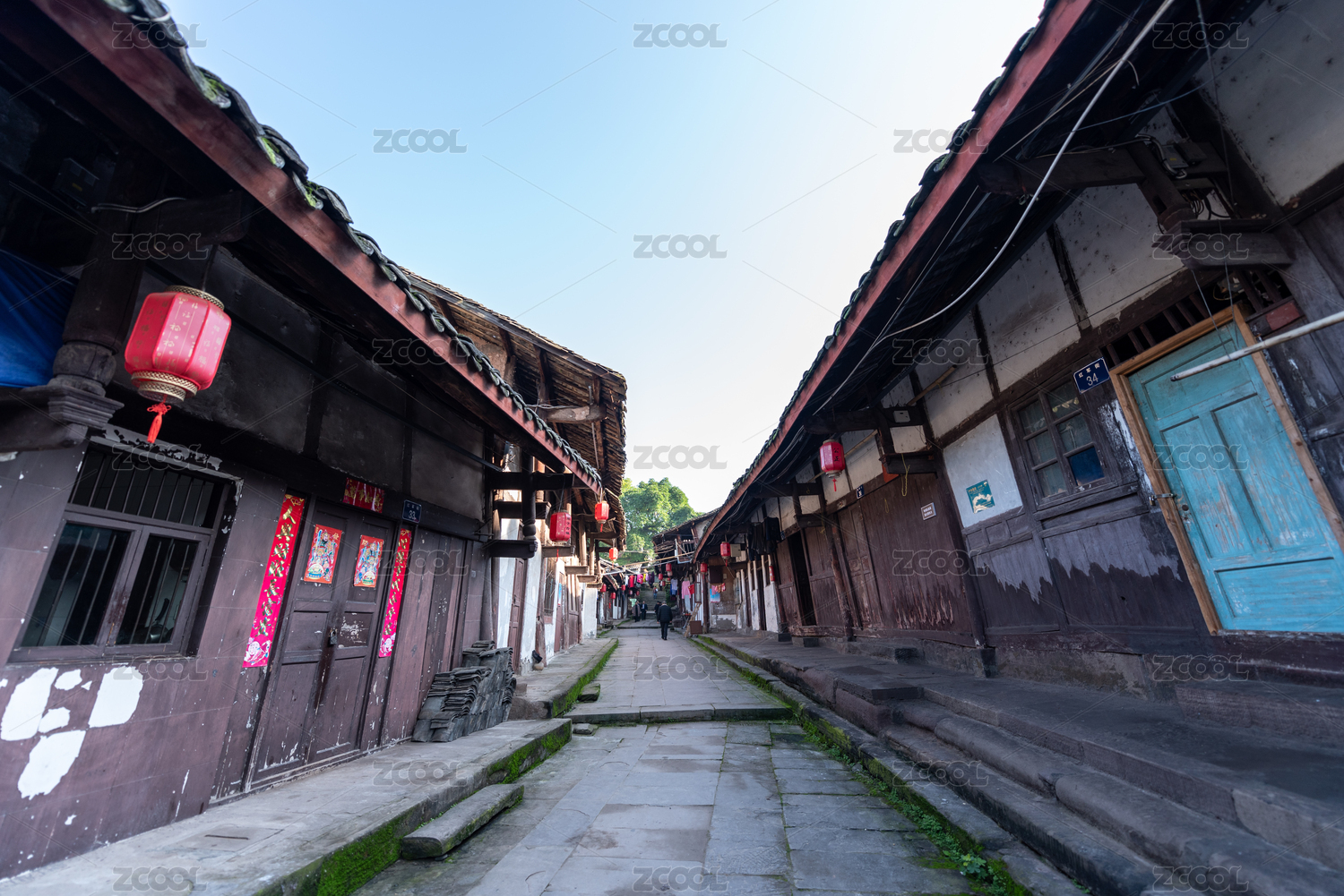 中国四川省眉山市洪雅县高庙镇古街木制建筑