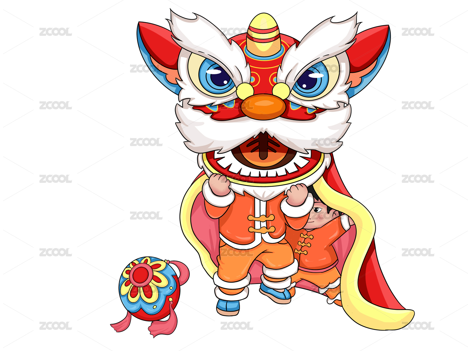 春节,新年,虎年,卡通老虎,舞狮,可爱,过年,传统