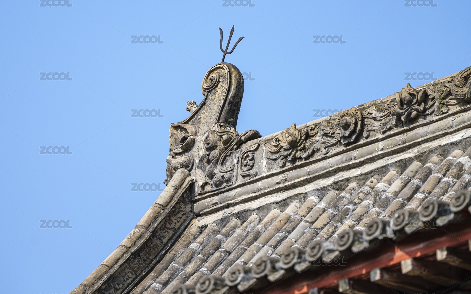 中国浙江宁波慈城城隍庙硬山顶正脊垂脊龙吻雕像