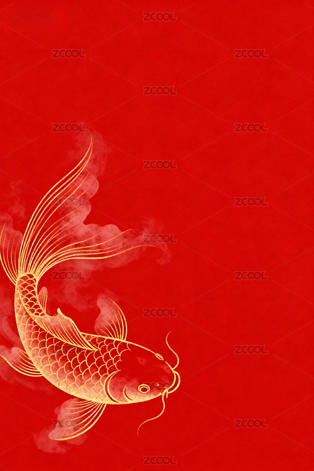 中国风红色背景金色鲤鱼