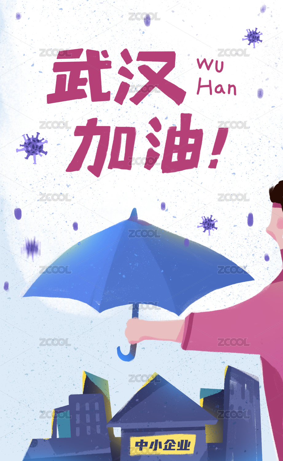 肺炎病毒下拿着雨伞为城市遮雨的人