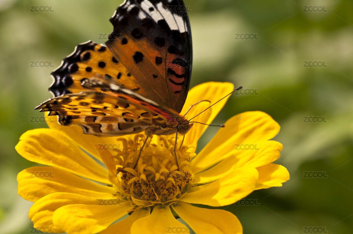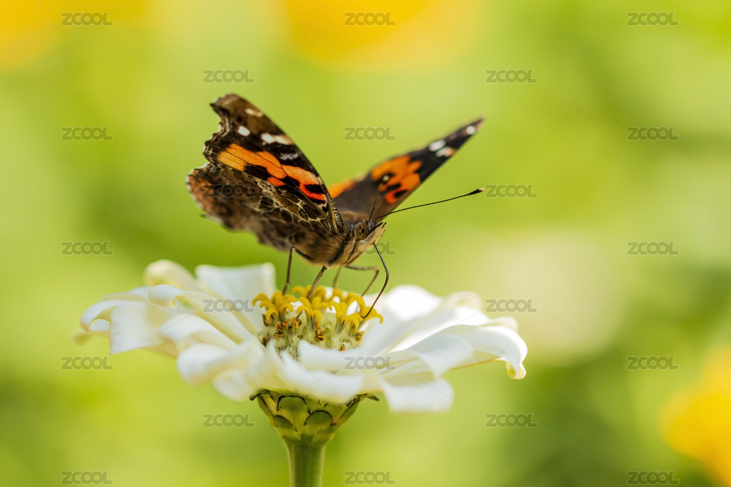 在白色百日菊花上采食花蜜的大红蛱蝶