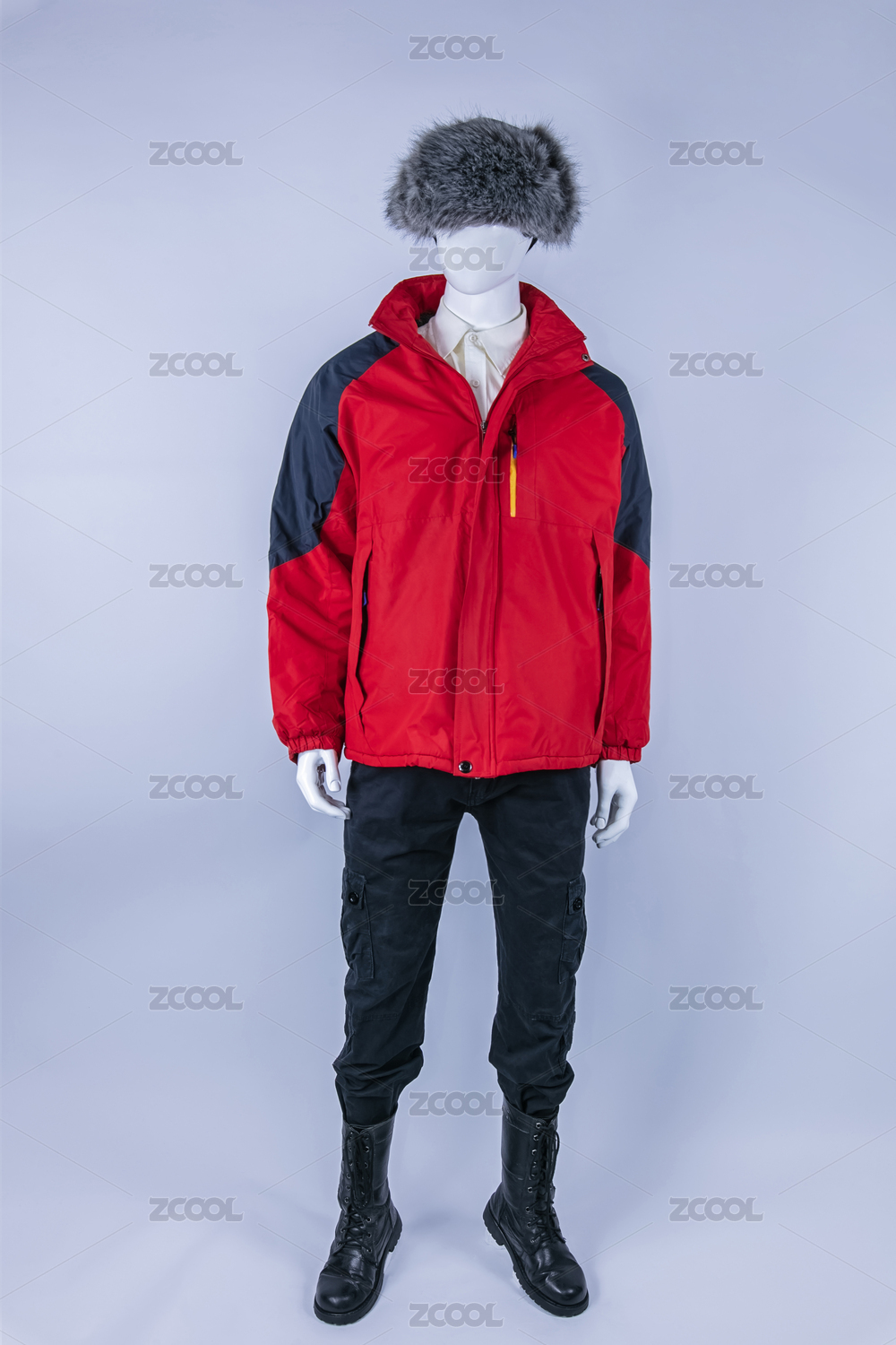 冬季户外红色羽绒服工装外套服饰