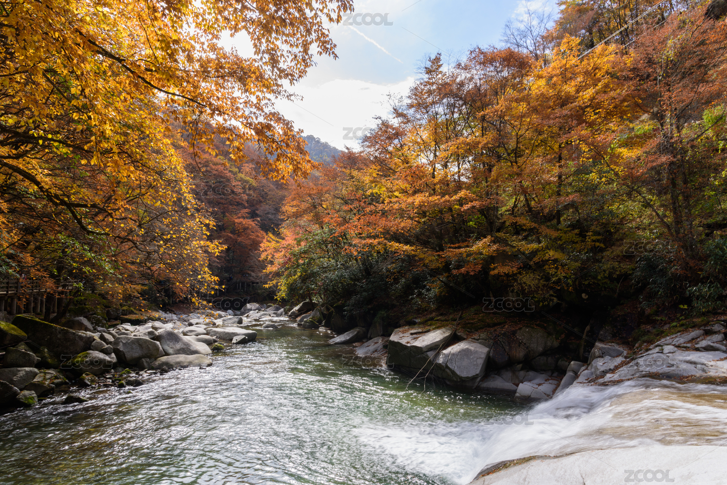 中国四川巴中南江县光雾山秋季的红叶溪流