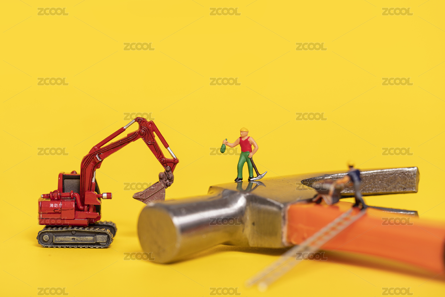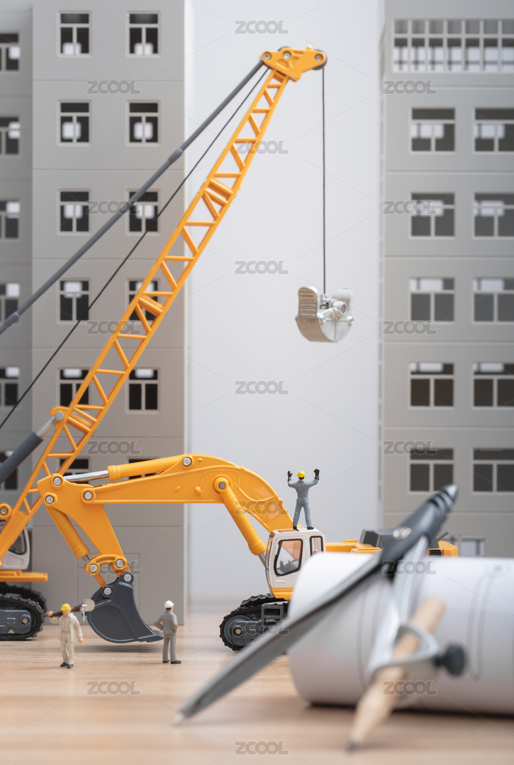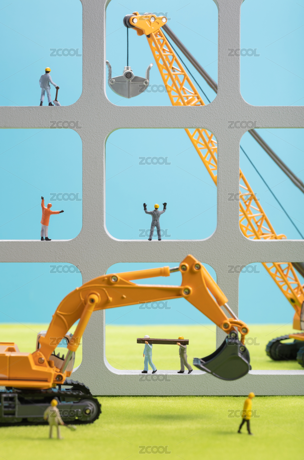 微缩创意工程机械与劳动中的基建工人