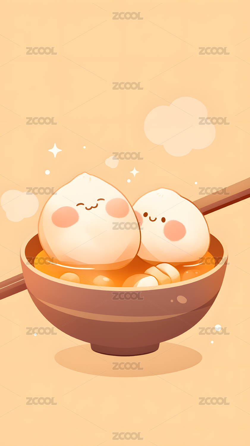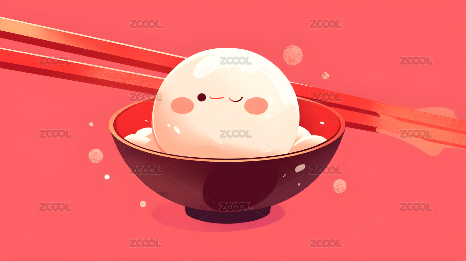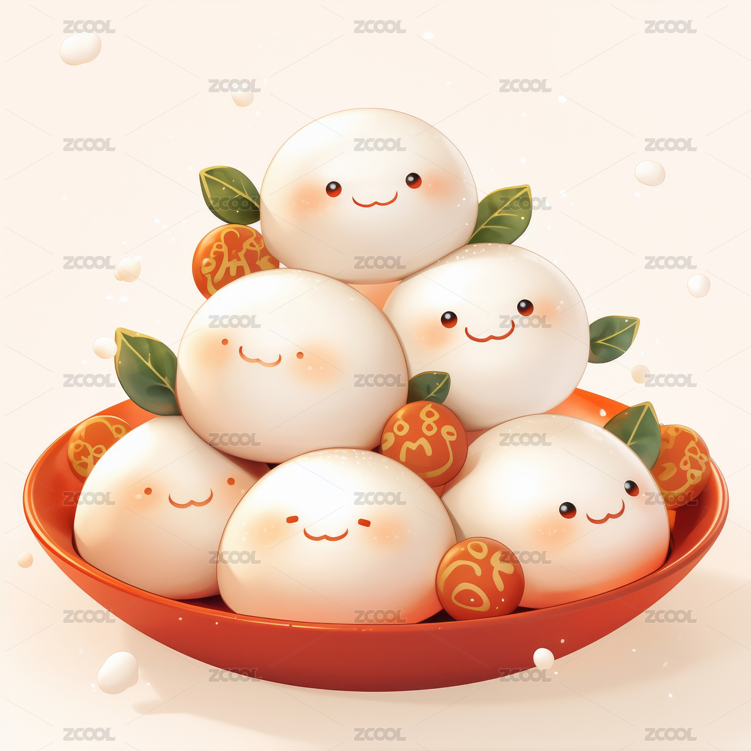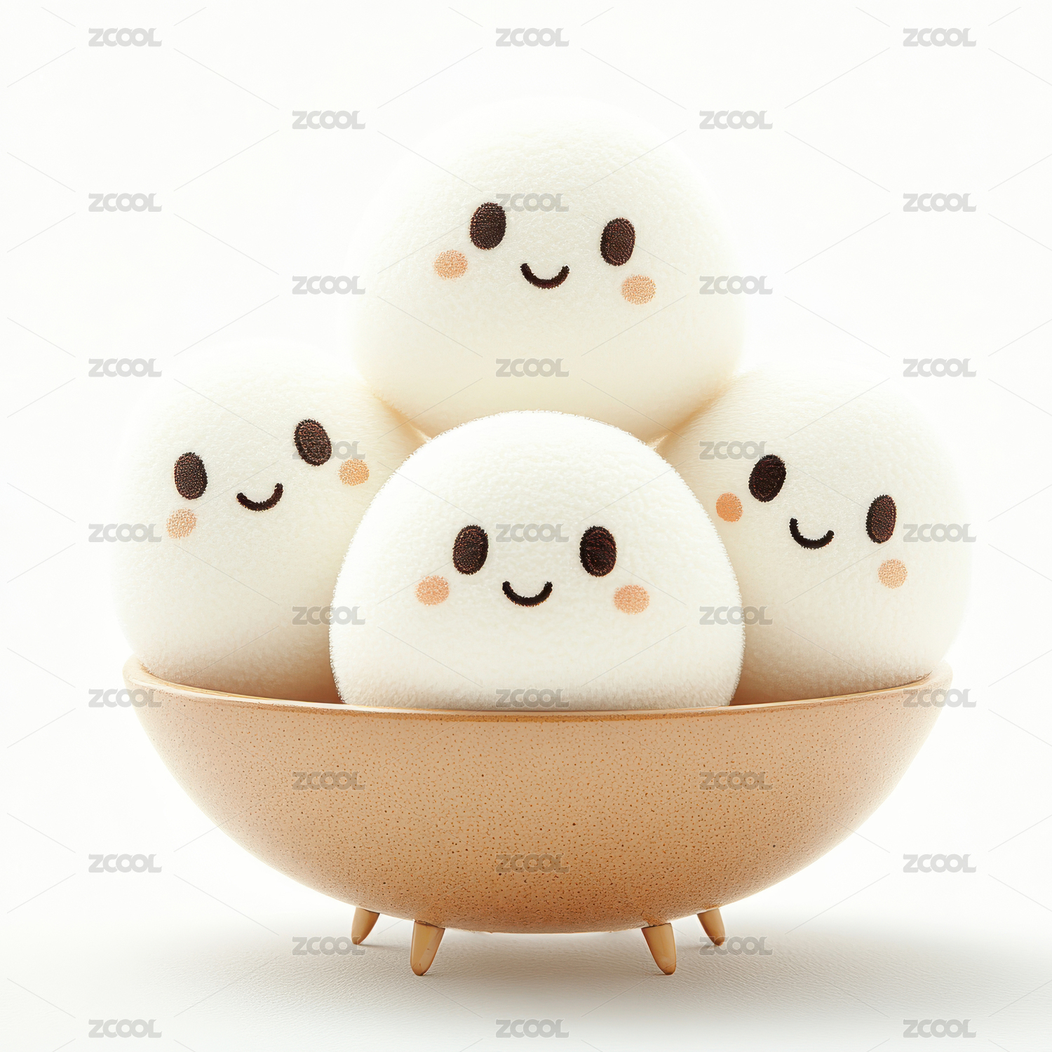 可爱拟人微笑的碗里毛毡汤圆饭团