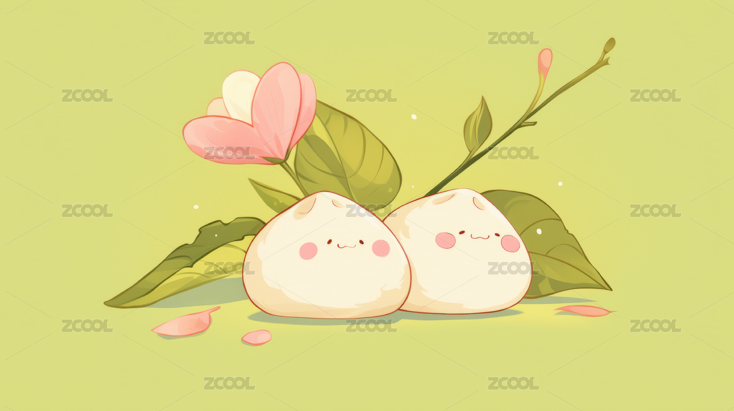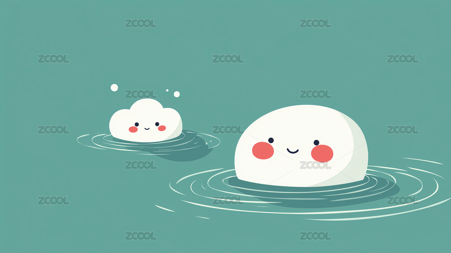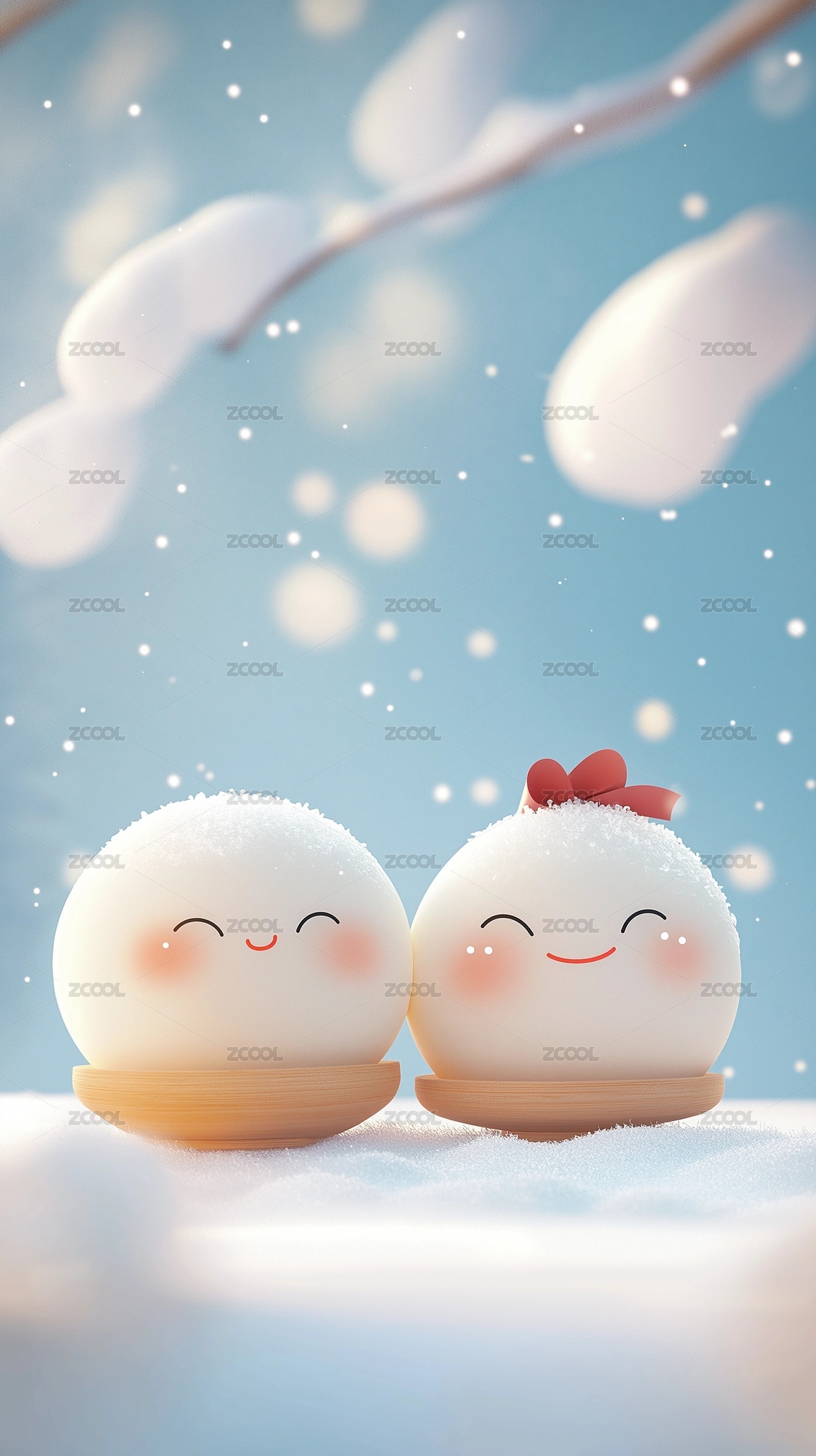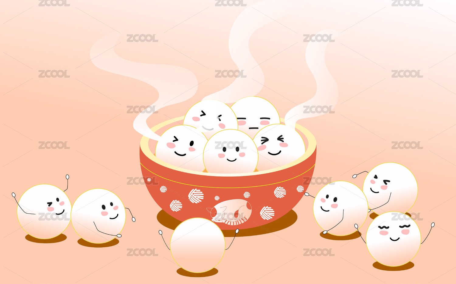 可爱拟人微笑的碗里毛毡汤圆饭团
