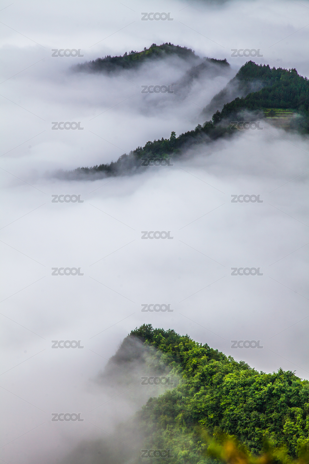 四川宜宾蜀南竹海云雾缭绕的丘陵山包与山脉