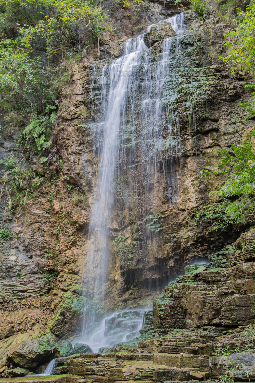 自然,风光,景观,山泉,瀑布,竖构图,岩石,小草坝,彝良,云南