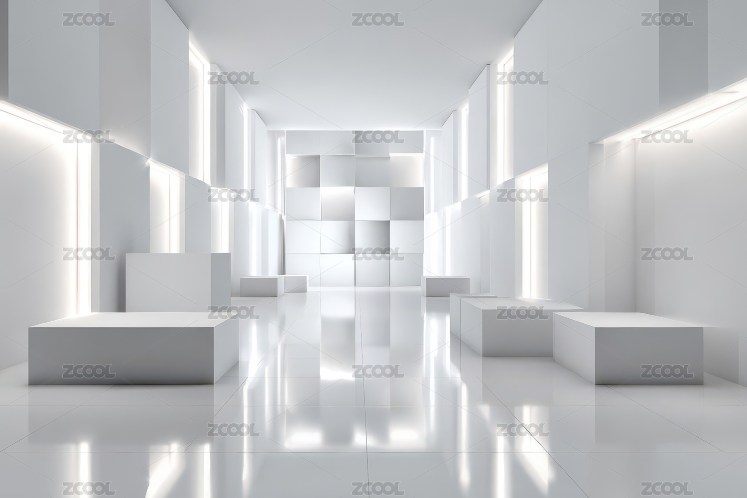 未来,空间,白色,光线,地板,墙壁,立方体,红色,蓝色,几何