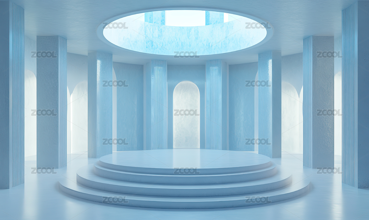 蓝色化妆品产品展示台简约创意3D渲染三维