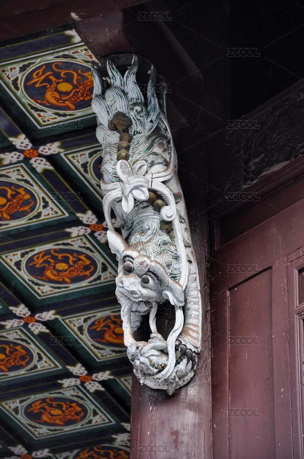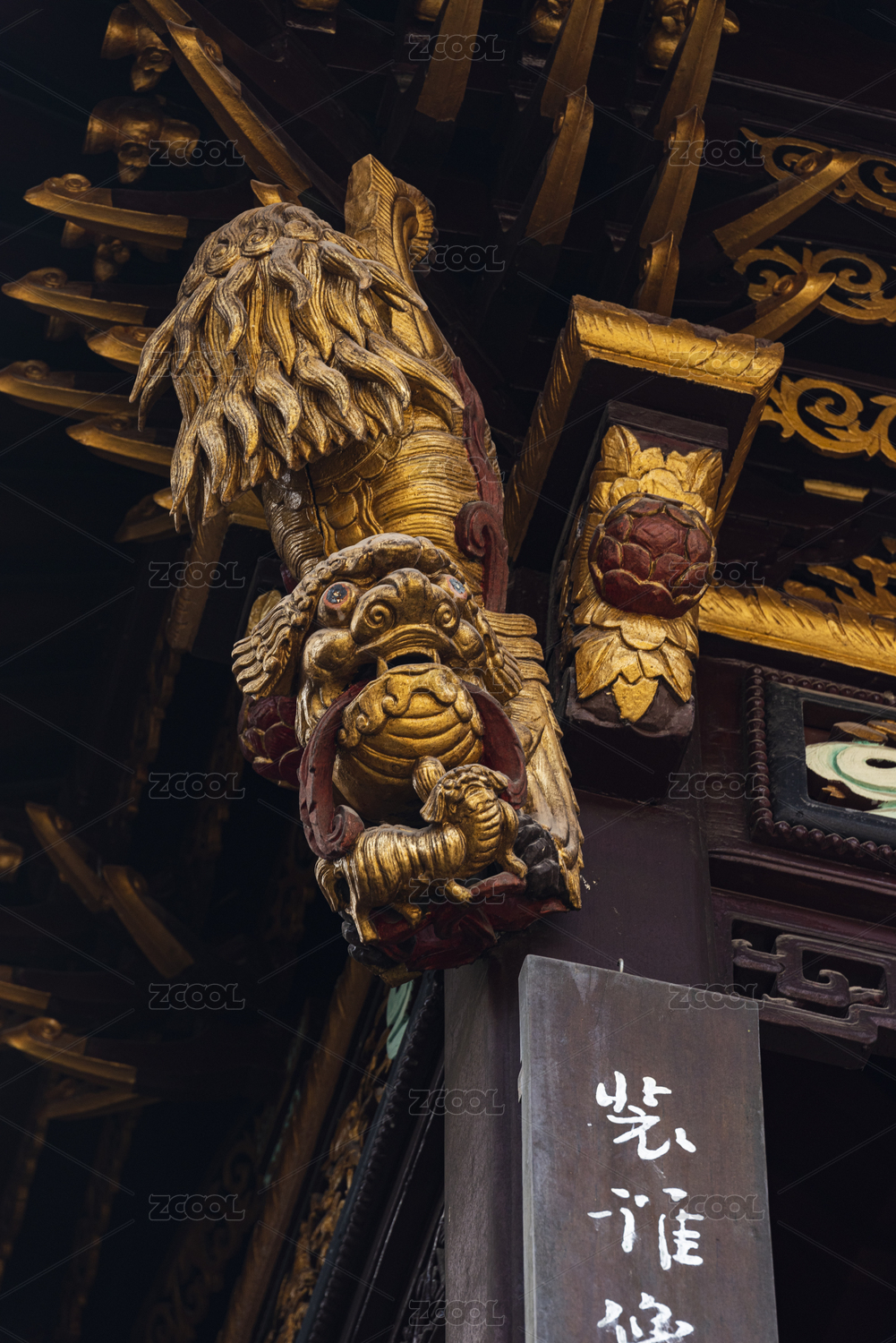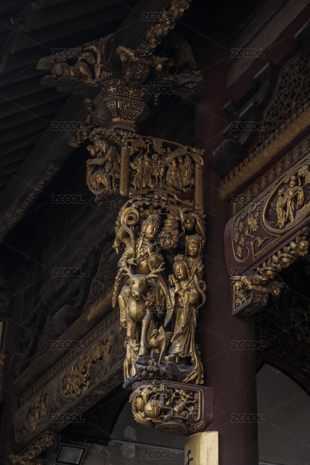 中国浙江绍兴上虞孝女曹娥庙檐下境内木刻雕花