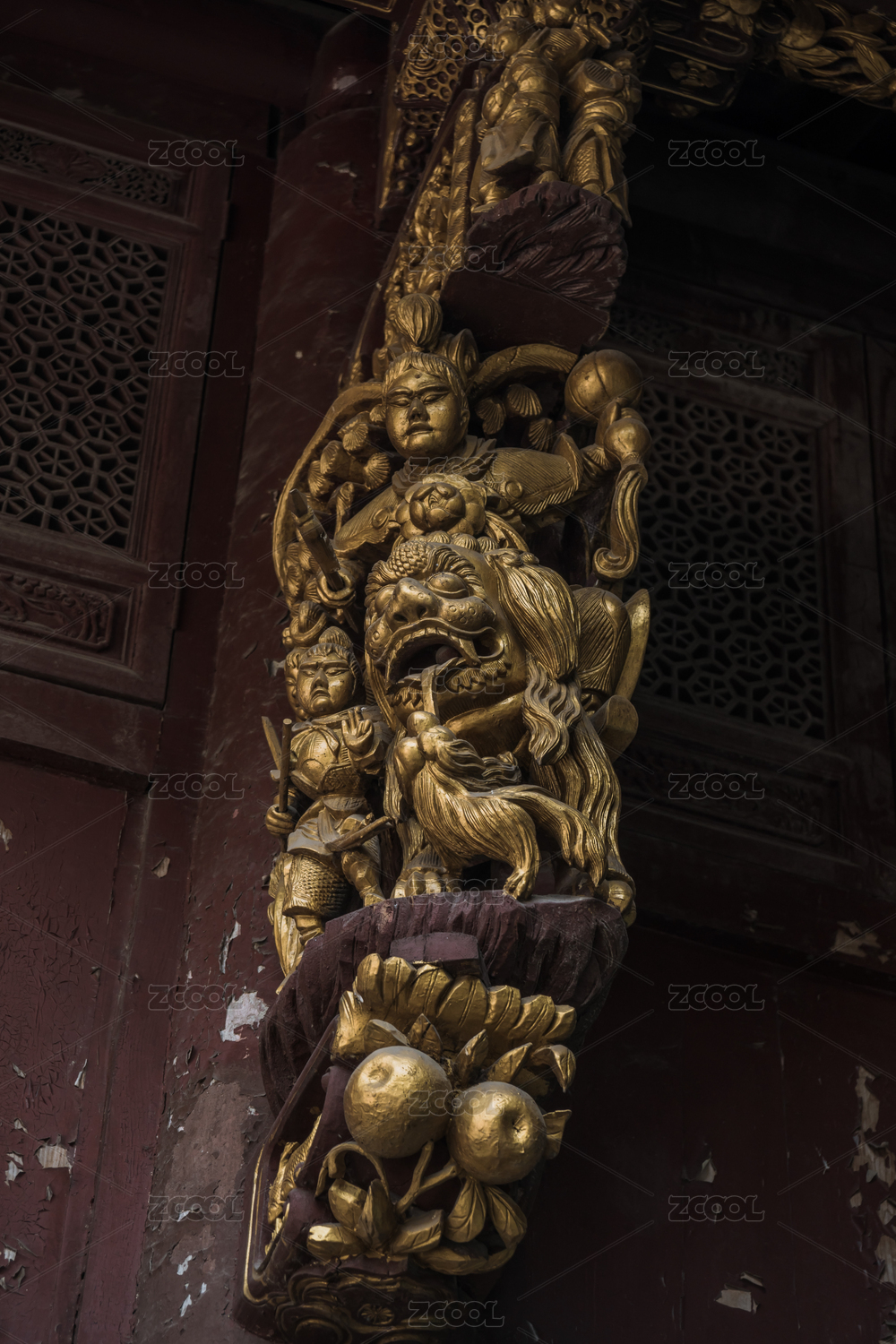中国浙江绍兴嵊州城隍庙的木雕牛腿构件