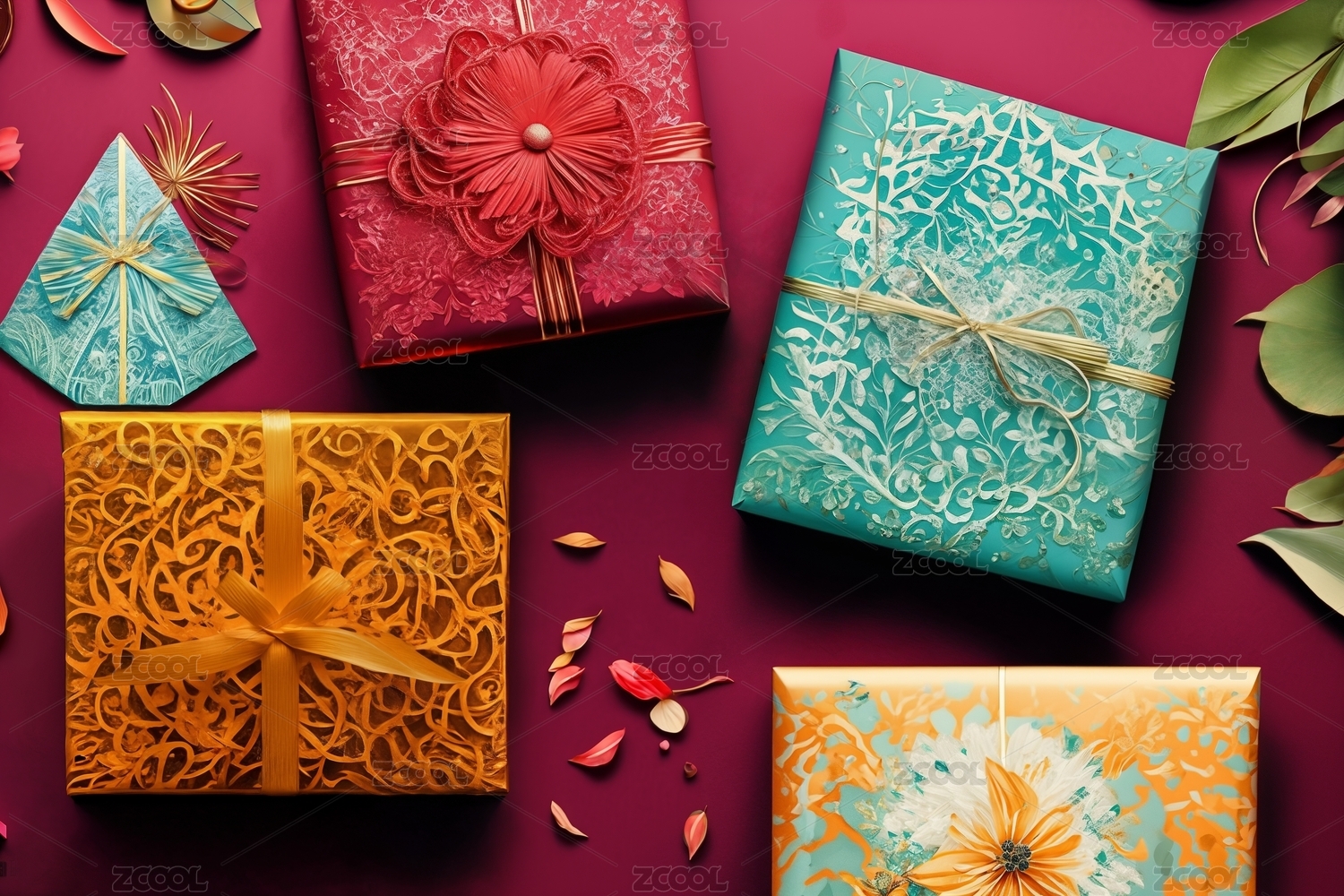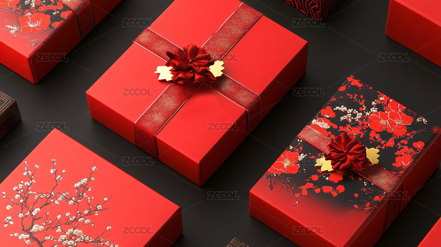 礼品,礼盒,包装,红色,金色,蝴蝶结,花朵,装饰,节日,庆祝