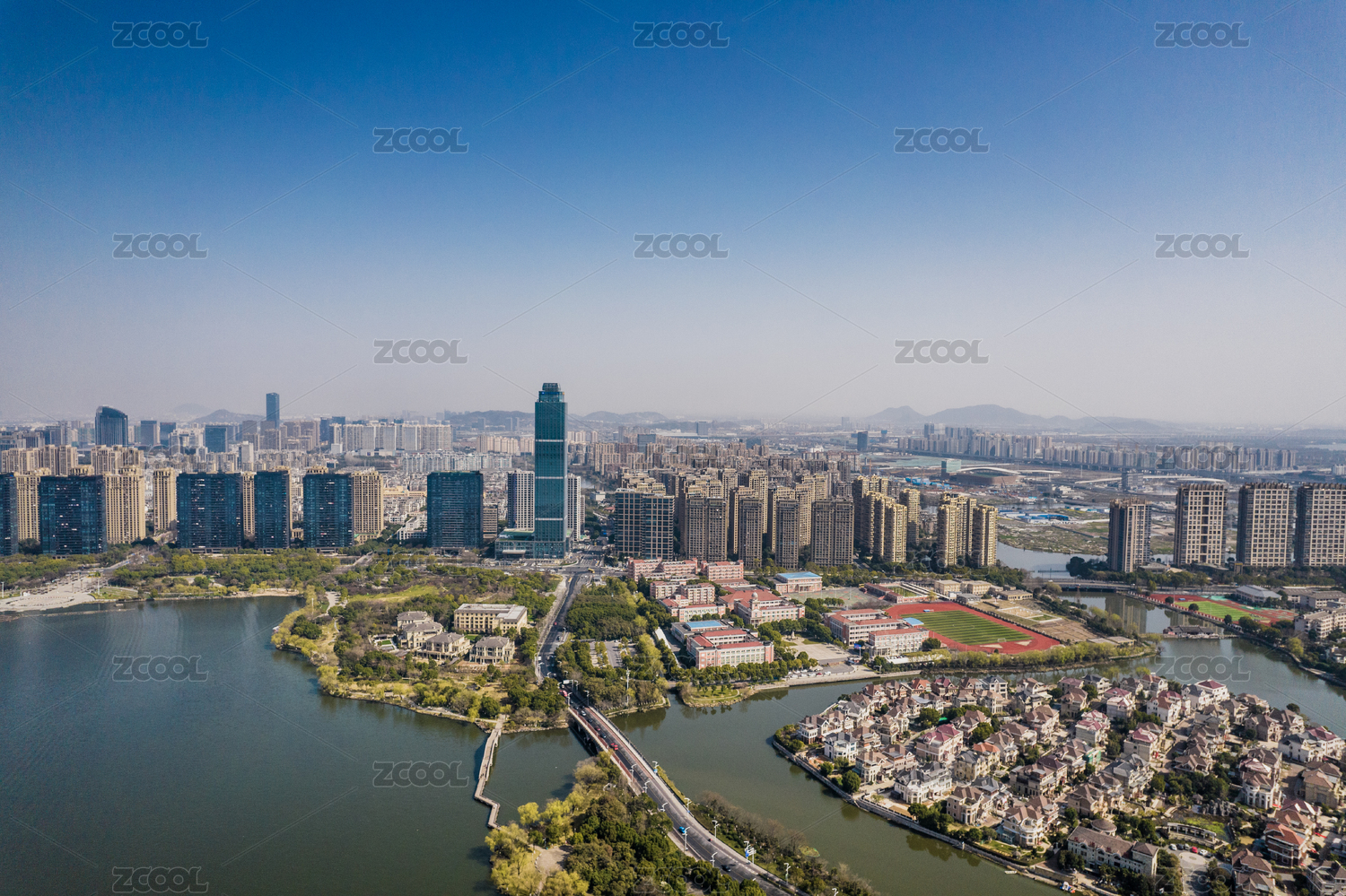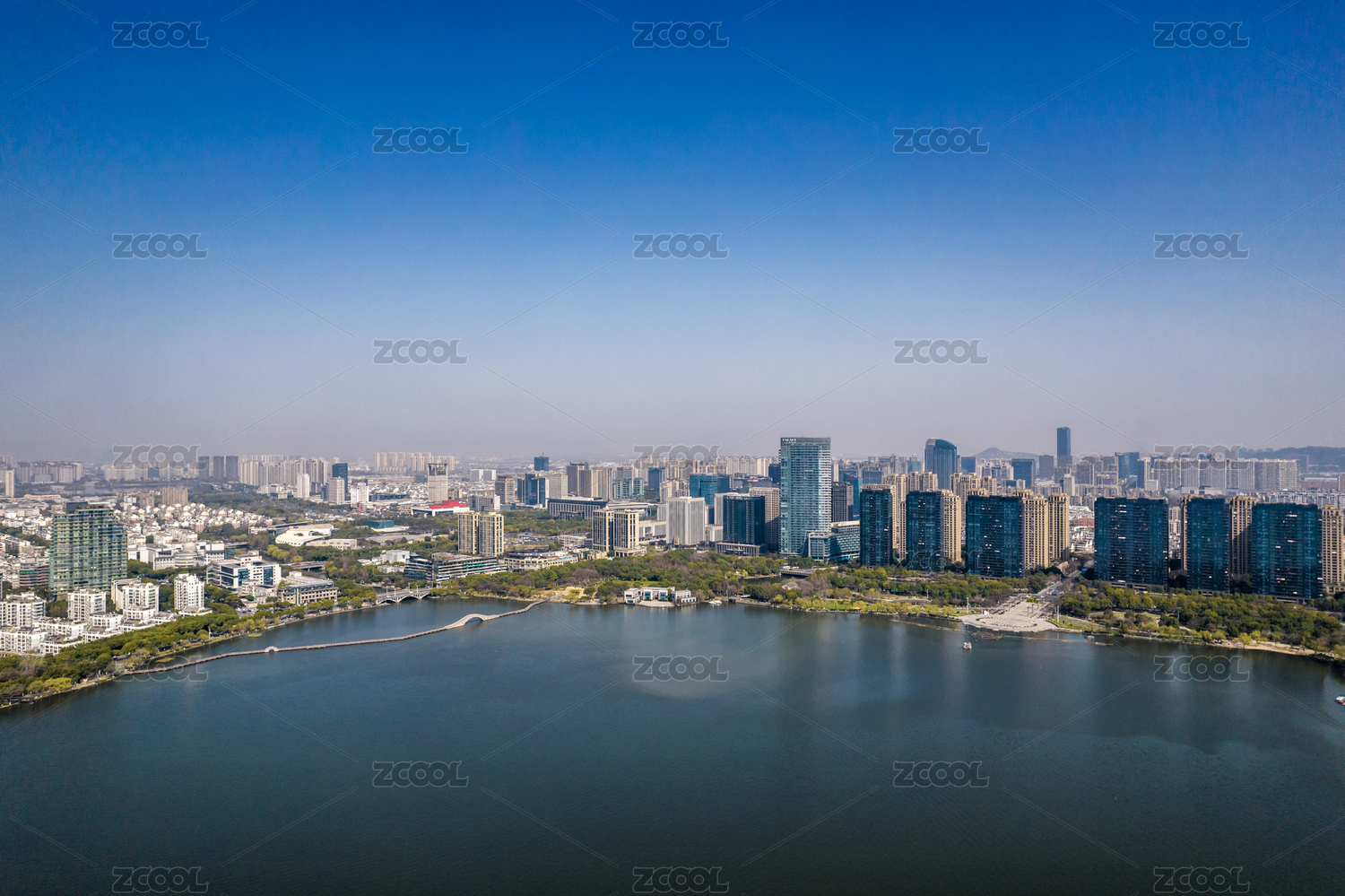 绍兴市柯桥区城市风光航拍,瓜渚湖湖滨公园