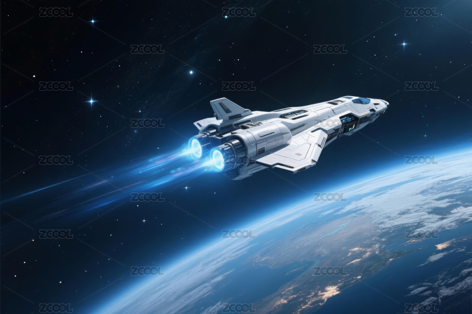 白色飞船遨游太空