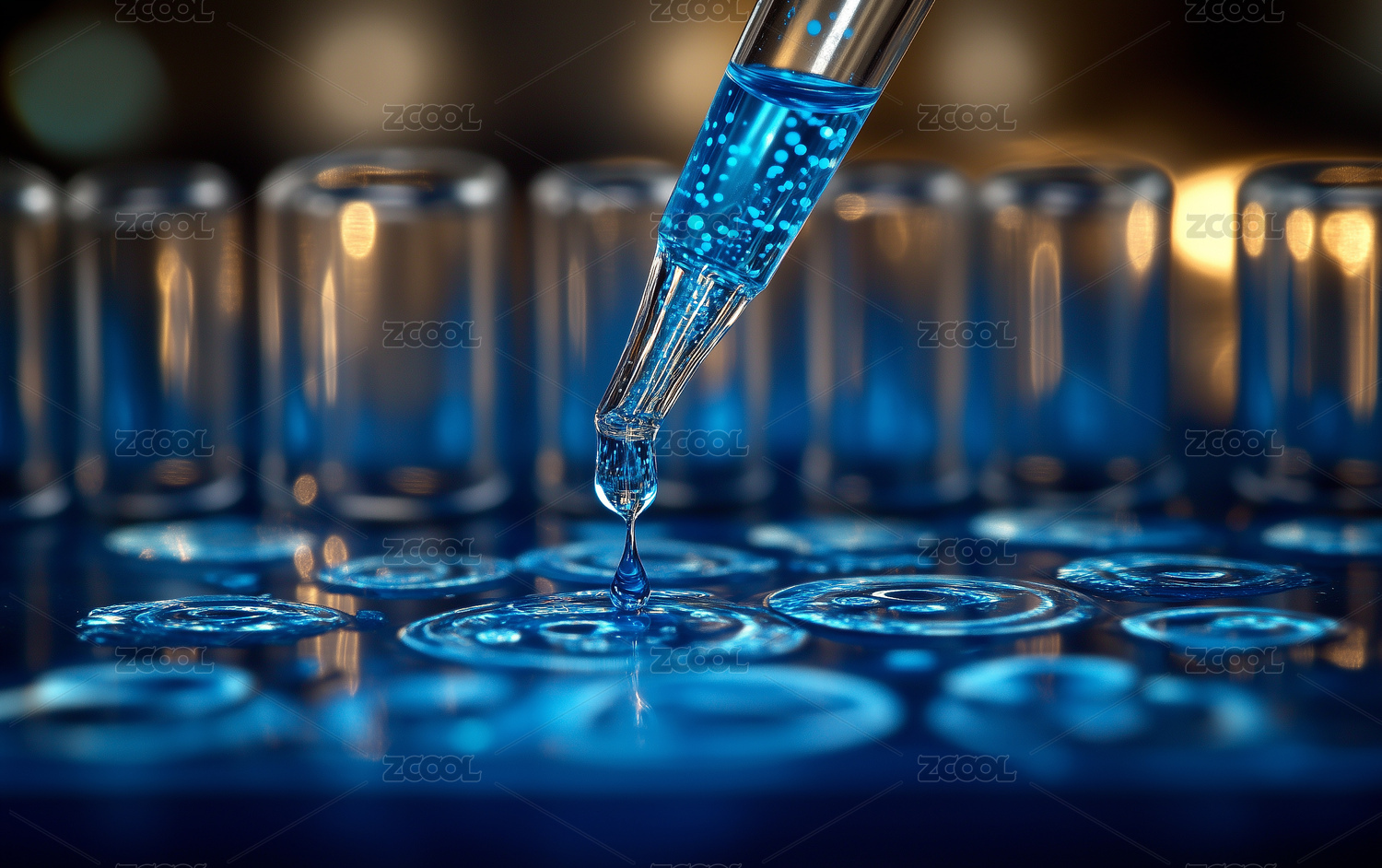 实验室中移液器向培养皿滴加液体