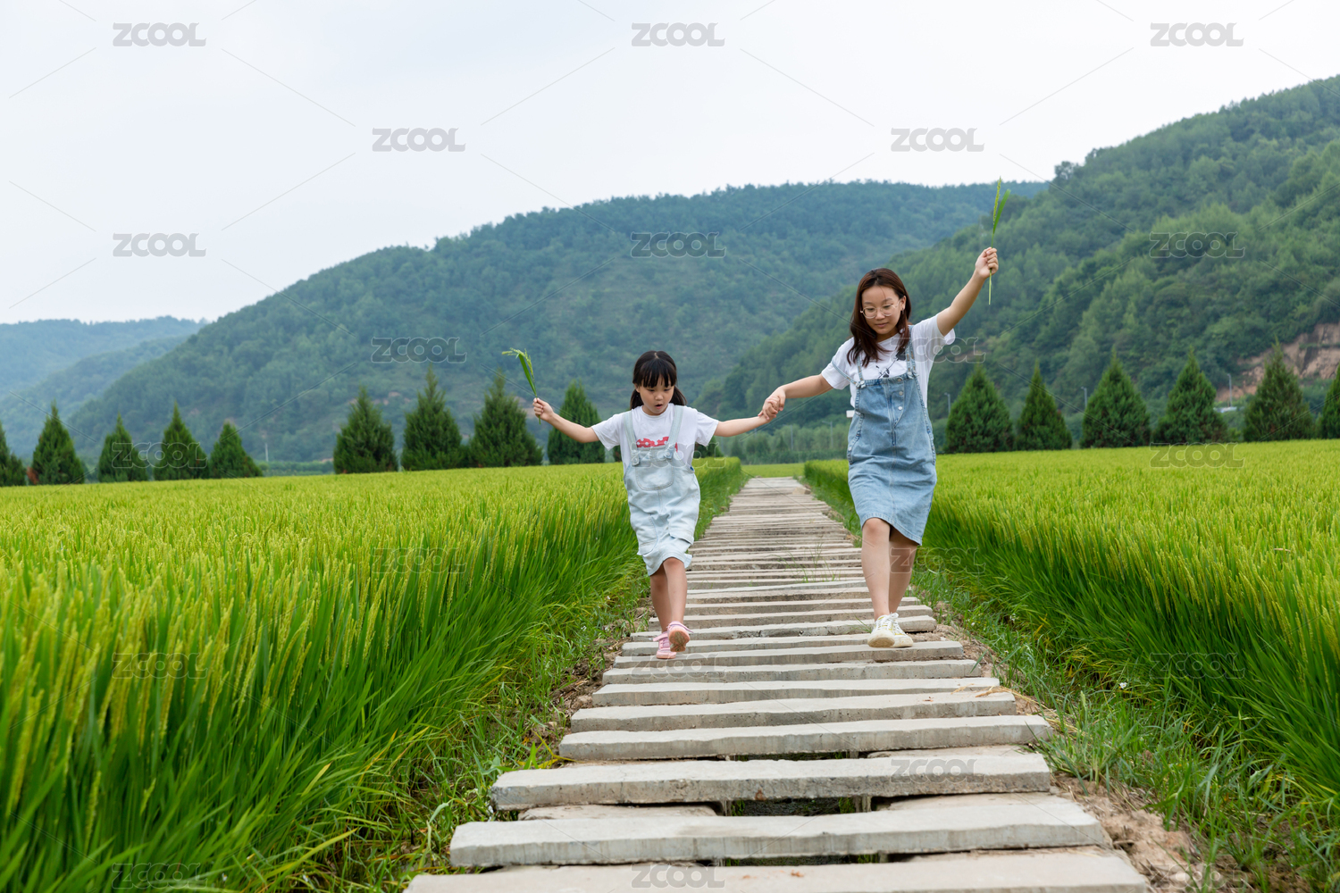 儿童,小学生,小女孩,小朋友,可爱,童年,户外,大自然,水稻,田园