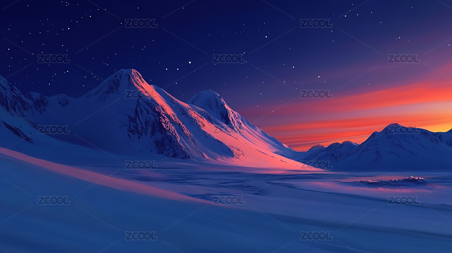 星空下的雪山与
