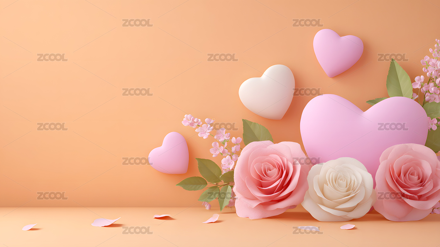 3D卡通立体爱心鲜花背景