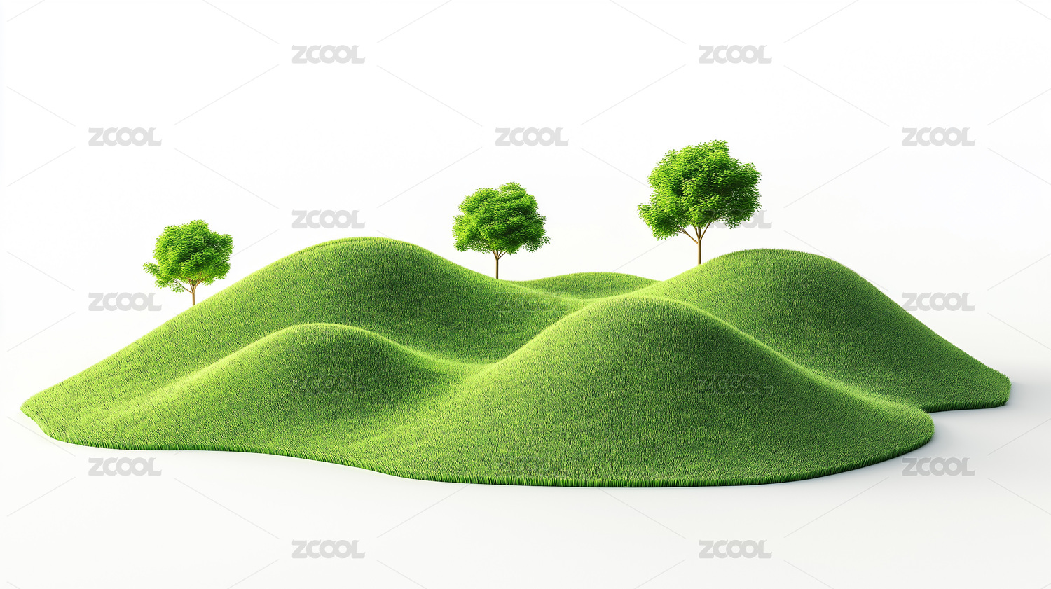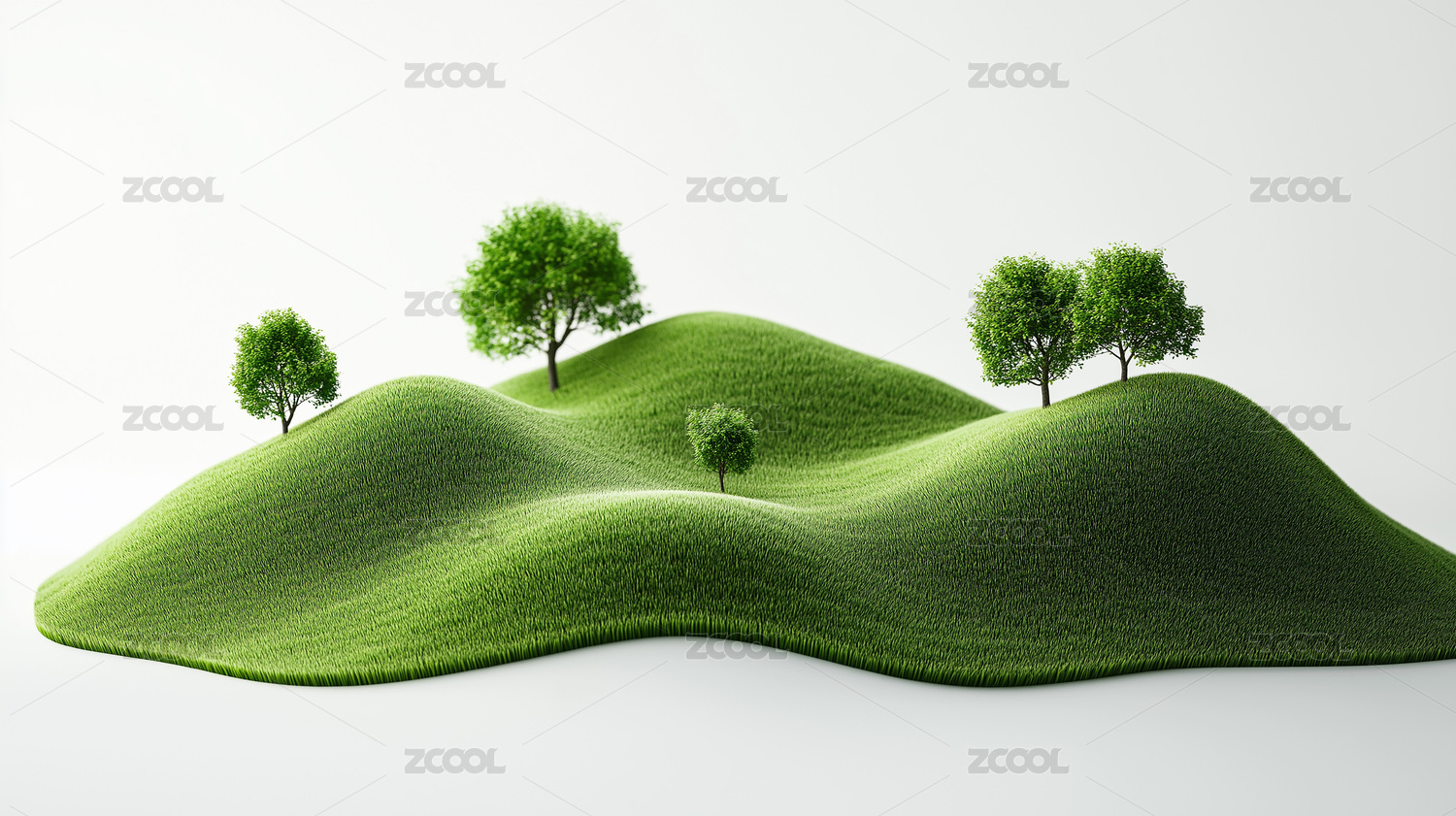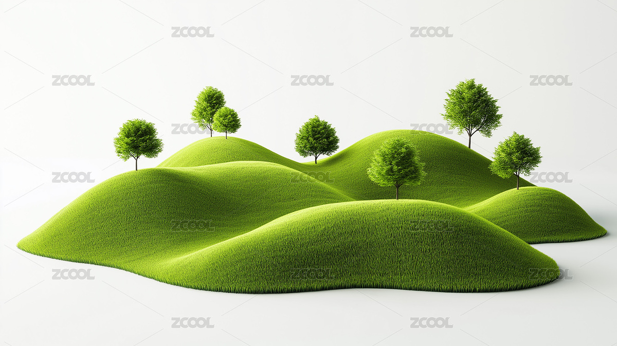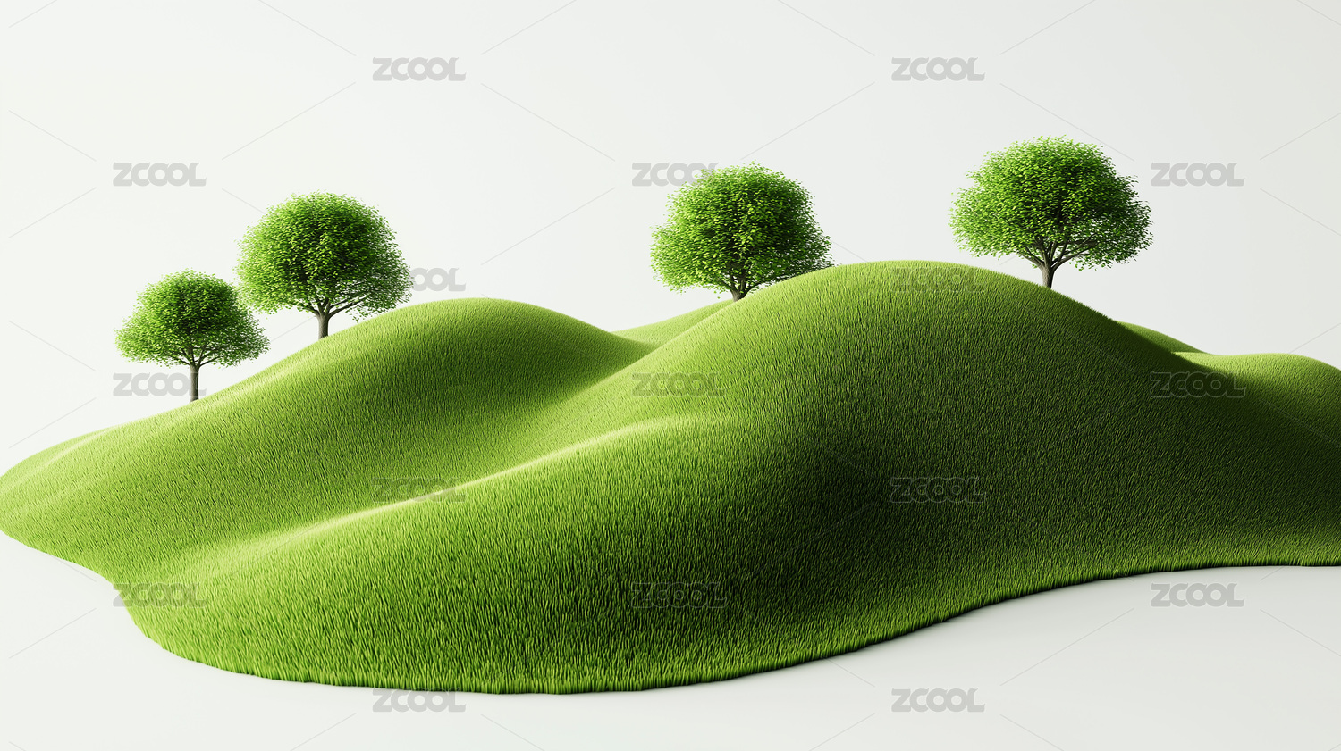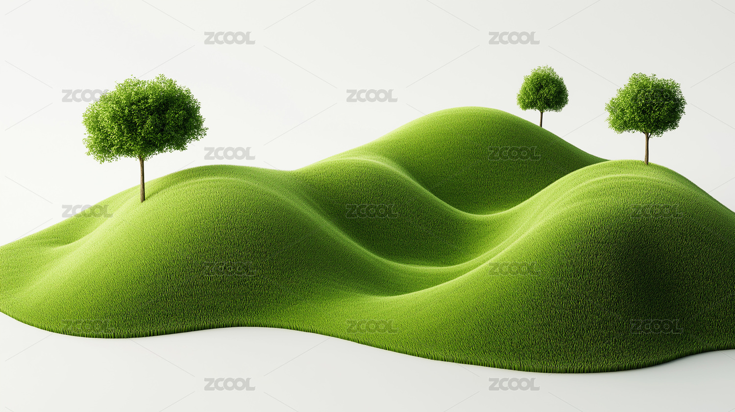 卡通风格,绿色小山丘,黄色花朵,树木,梦幻,自然景观,春天,夏天,清新,生机勃勃