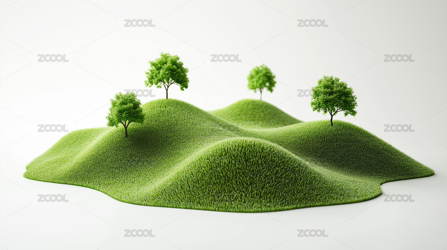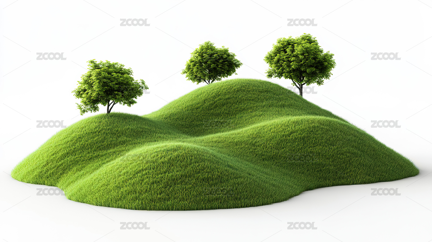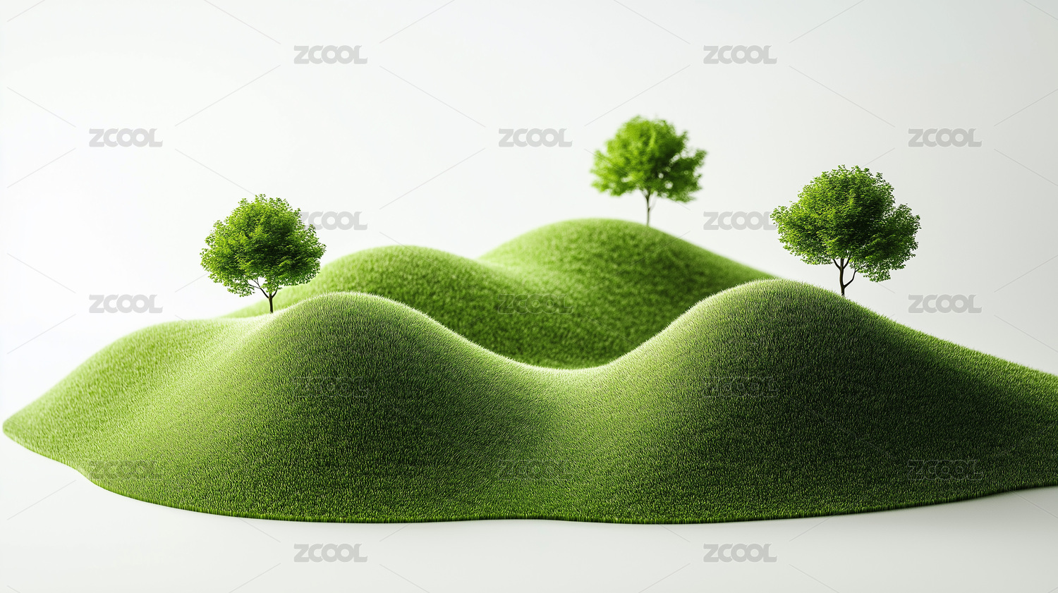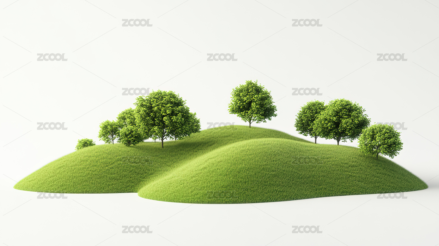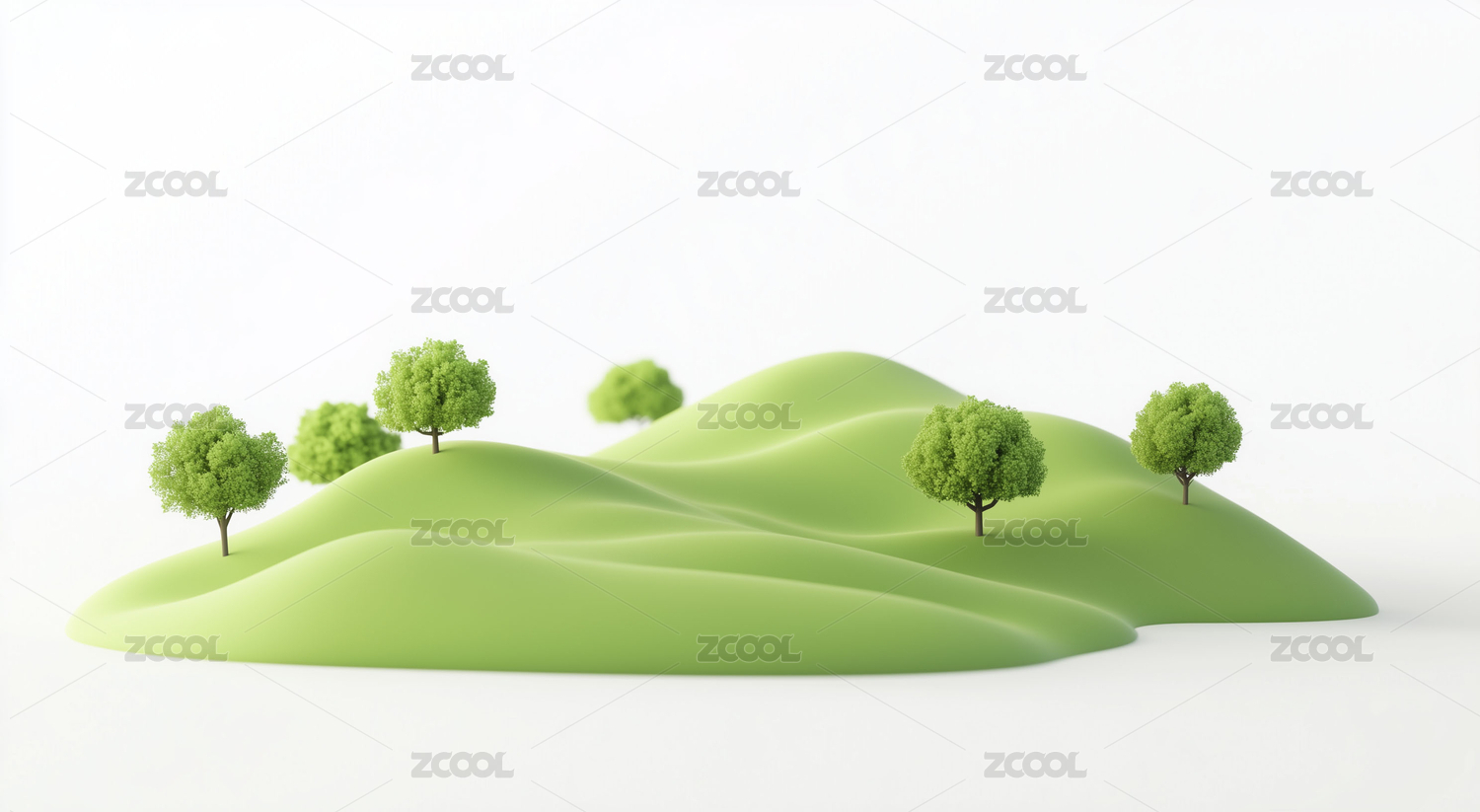 卡通风格,绿色小山丘,黄色花朵,树木,梦幻,自然景观,春天,夏天,清新,生机勃勃