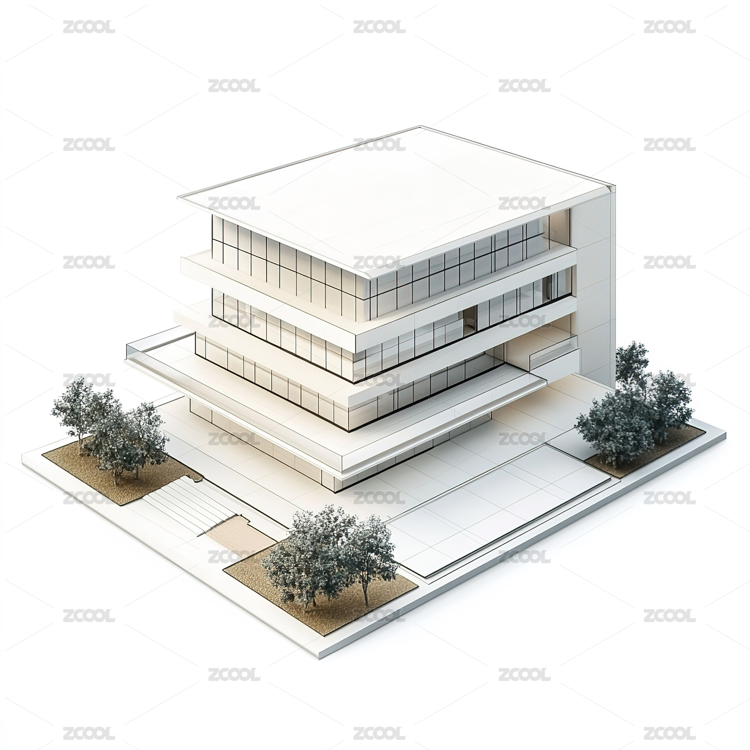 白色背景下的现代建筑