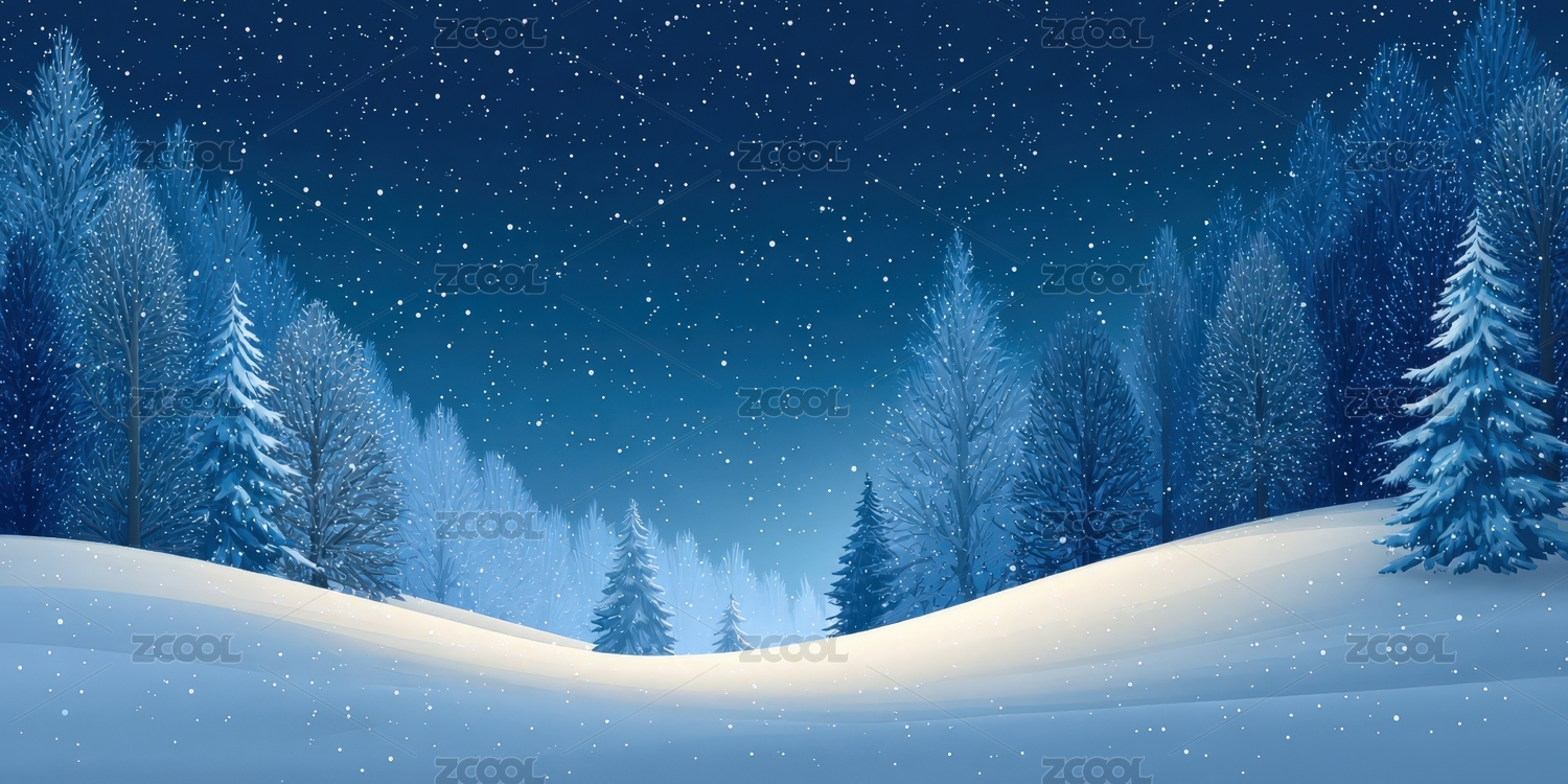 雪夜中的森林景象