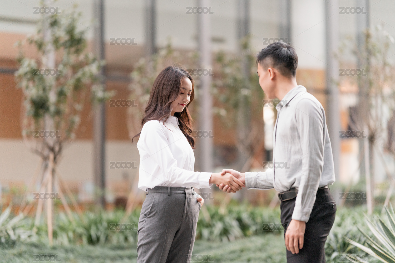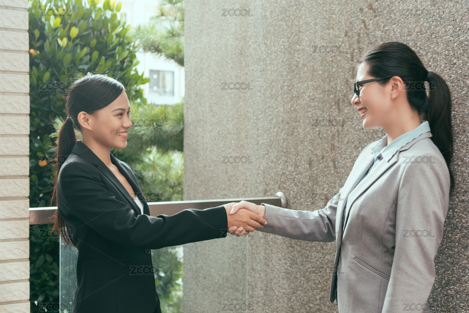 两个幸福的成功的信心,亚洲乐于合作和握手准备开始一起工作。