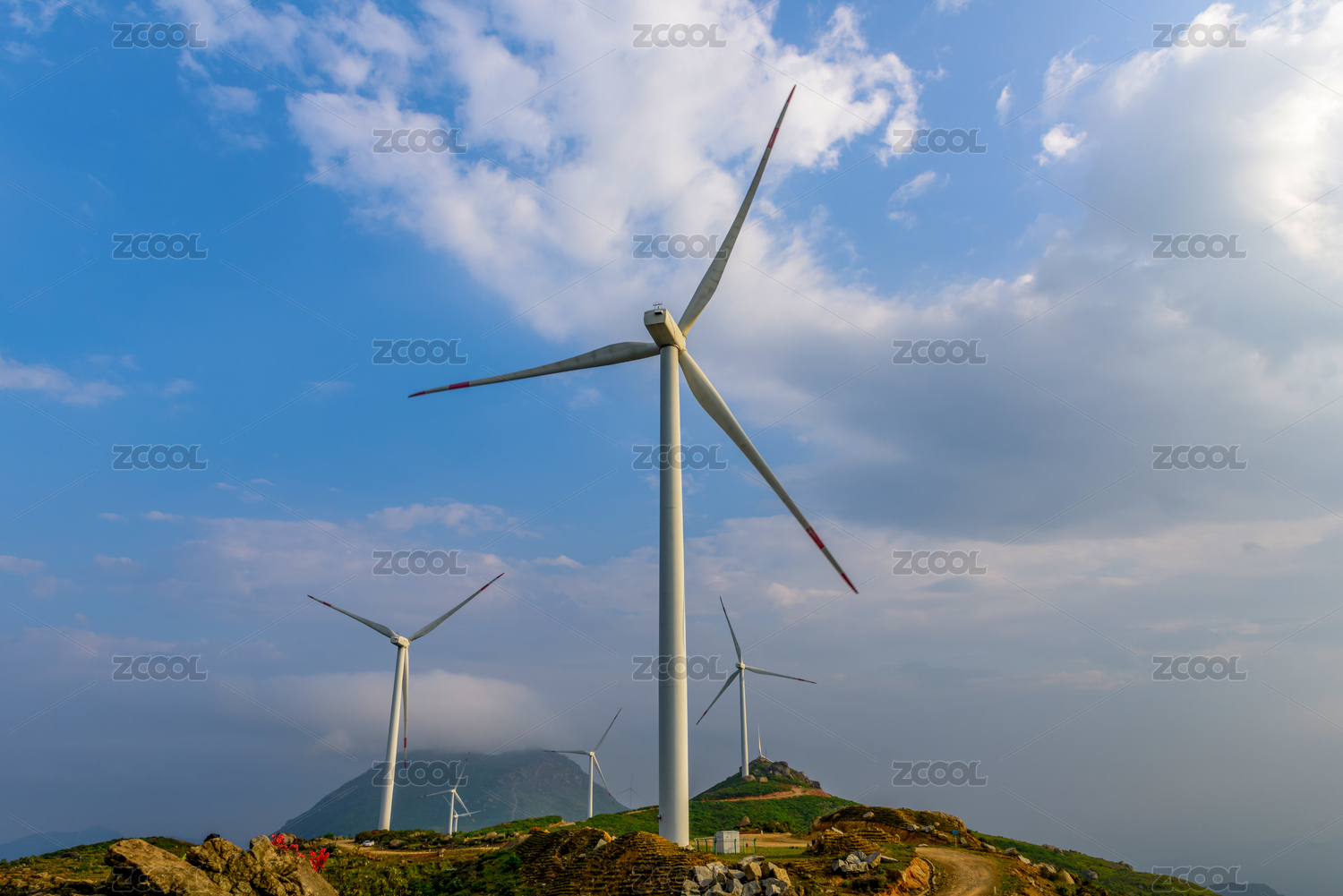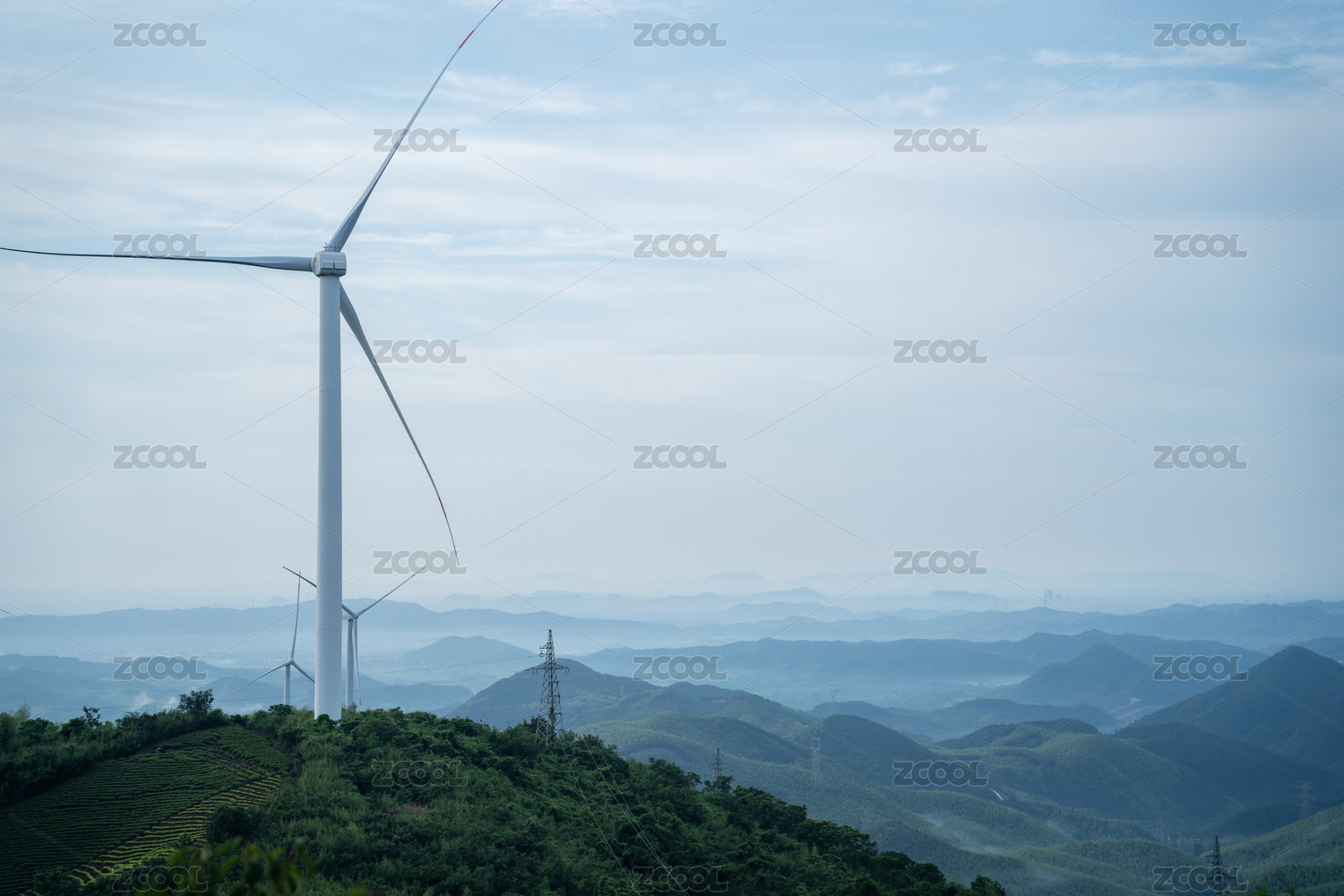 大自然,风车,山,草原,天空,山谷,涡轮发动机,风电,风,电