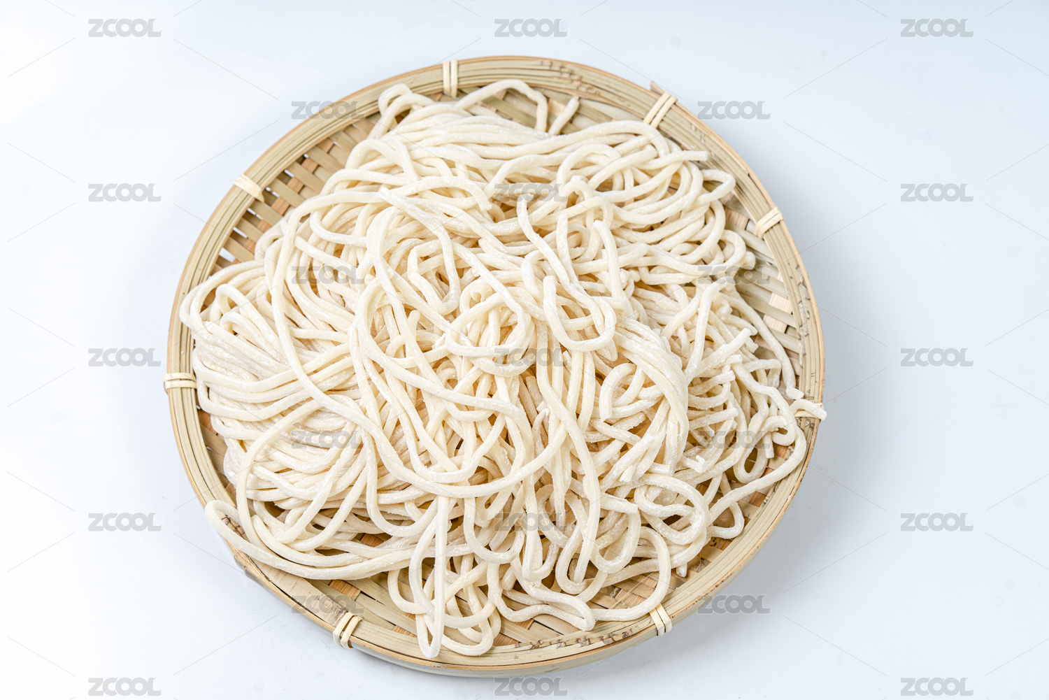 一团面条放在竹子编制的小筐里